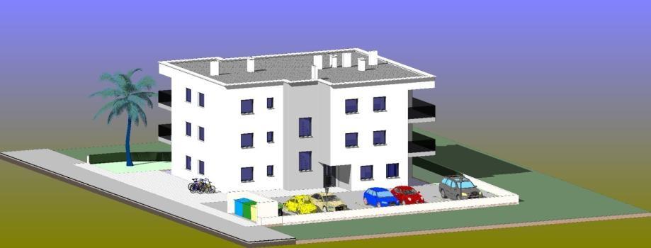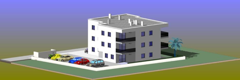 Zgrada je smještena u mirnom dijelu grada Paga, blizu svih potrebnih sadržaja za lagodan život, s centrom grada udaljenim samo 5 minuta hoda.