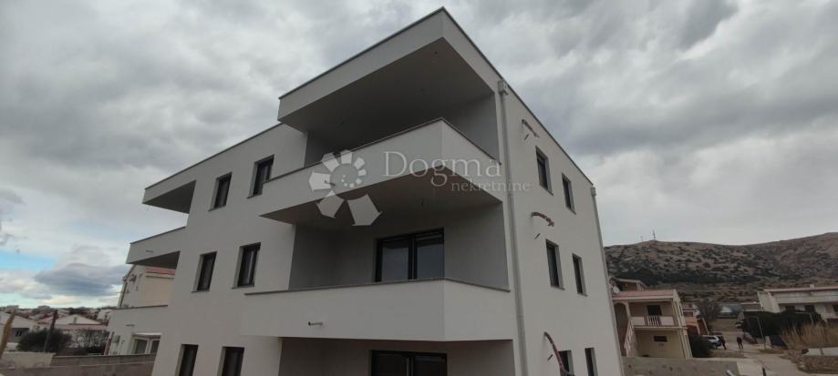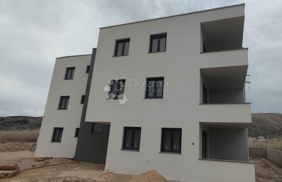 Na prodaju je stan na drugom katu ukupne unutarnje površine 62.13m2. Po ulasku u hodnik, ispred ulaznih vrata nalazi se ostava, dok se desno nalazi kupanoica. S lijeve strane hodnika nalaze se 2 spavaće sobe koje su okrenute na jug dok se na kraju hodnika ulazi u dnevni boravak, kuhinju i blagavonicu odakle se može izaći na terasu površine 13.75 m2 s koje se pruža pogled na paški zaljev.