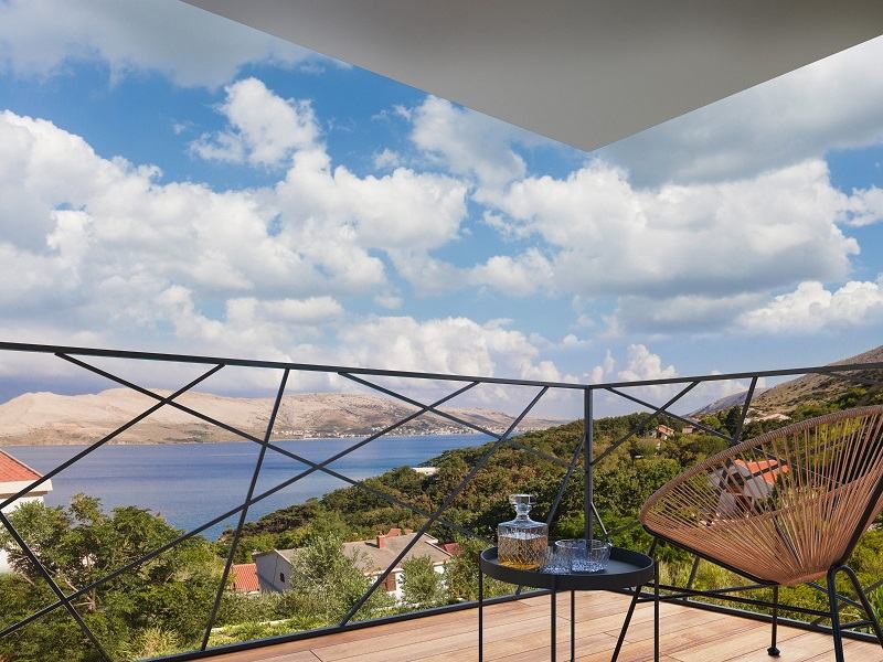 Dnevni boravak sa balkonom i panoramskim pogledom na Grad Pag.