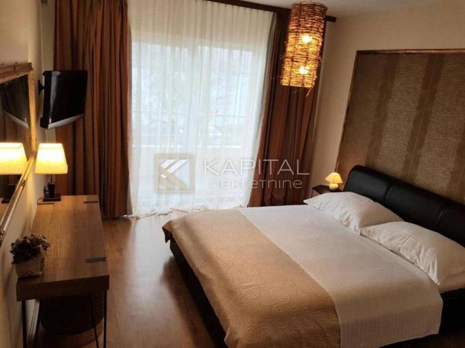8 elegantno uređenih soba s vlastitim kupaonicama, prostrani dvosobni apartman (kuhinja, blagovaonica, dnevni boravak, spavaća soba, kupaonica), restoran za goste, opremljenu teretanu, uređenu i ograđenu okućnicu s više parkirnih mjesta.. Svaka prostorija nudi udobnost i pogled na more, a savršen raspored omogućava maksimalnu iskoristivost prostora. Hotel je kategoriziran i posluje tijekom cijele godine, što predstavlja odličnu investicijsku priliku bez potrebe za dodatnim ulaganjima.