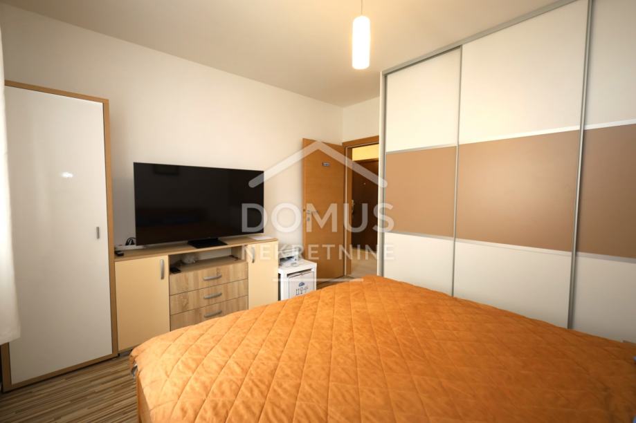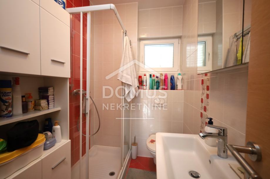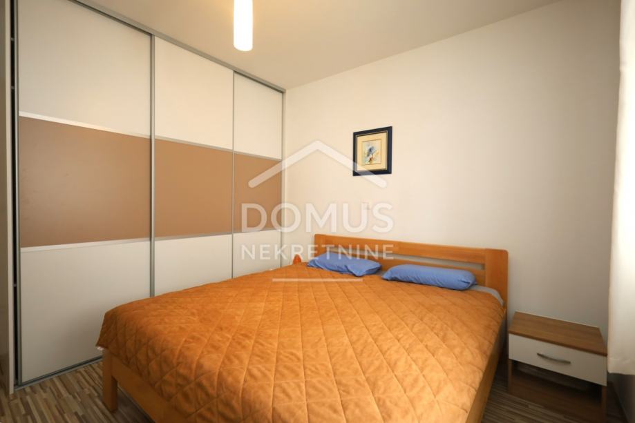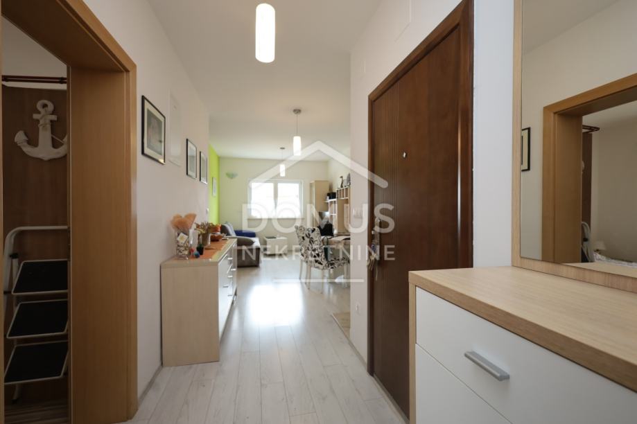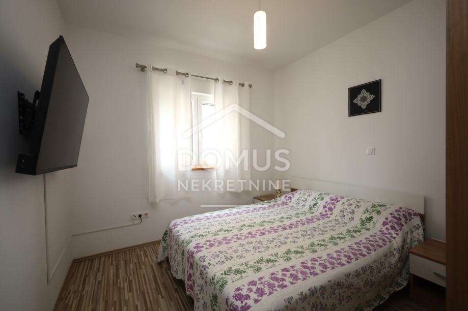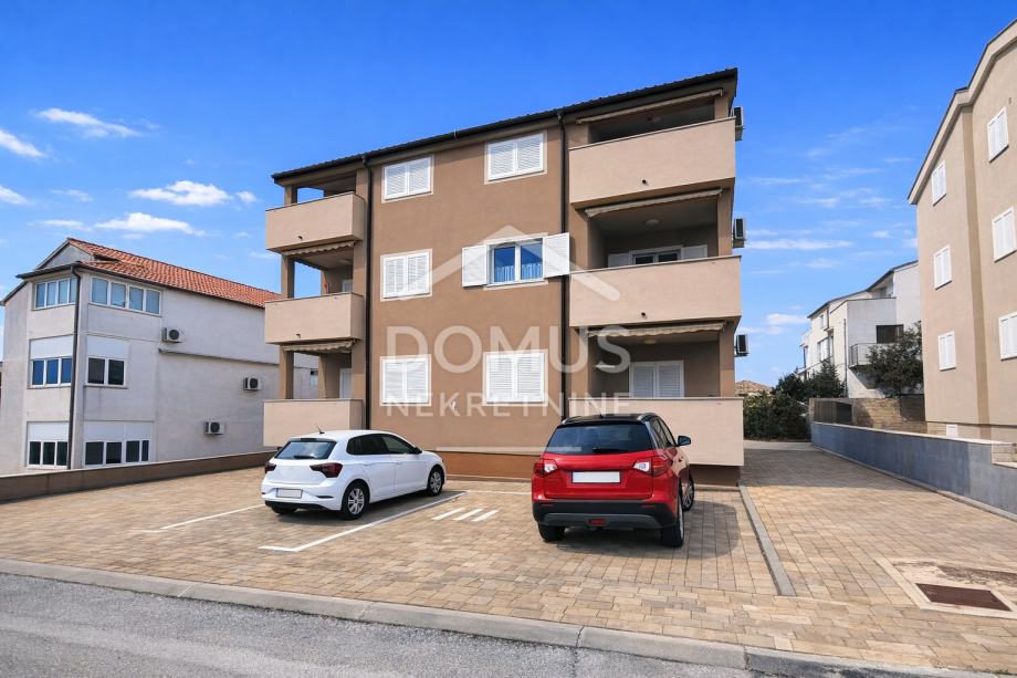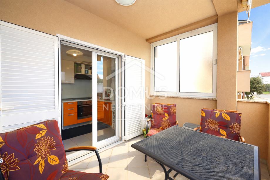 Pakoštane, na mirnoj lokaciji prodaje se stan na prvom katu manje stambene zgrade s ukupno 6 stambenih jedinica. Ukupna korisna površina iznosi 65,00 m², a sastoji se od hodnika, dnevnog boravka s kuhinjom i blagovaonicom s izlazom na natkrivenu terasu površine 7,64 m², dvije spavaće sobe i kupaonice. Stan se prodaje sa kompletnim namještajem, a opremljen je klima uređajem, kaminom na kruta goriva, PVC stolarijom s aluminijskim griljama i komarnicima. Objekt je spojen na kanalizaciju. Stanu pripada spremište u podrumu površine 3,02 m² te jedno parkirno mjesto. Udaljenost od uređene plaže iznosi 700 m, a od centra mjesta 800 m. Nekretnina predstavlja idealnu priliku za stanovanje ili kao investiciju za turistički najam.
