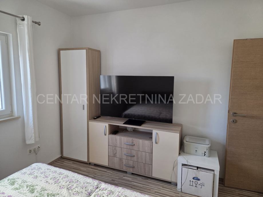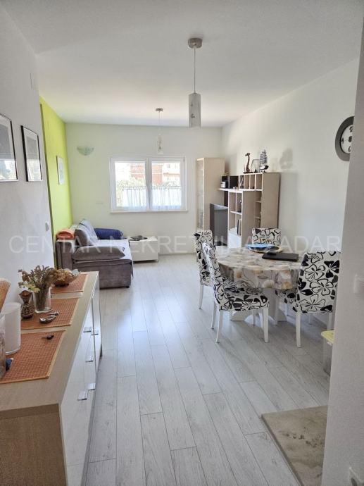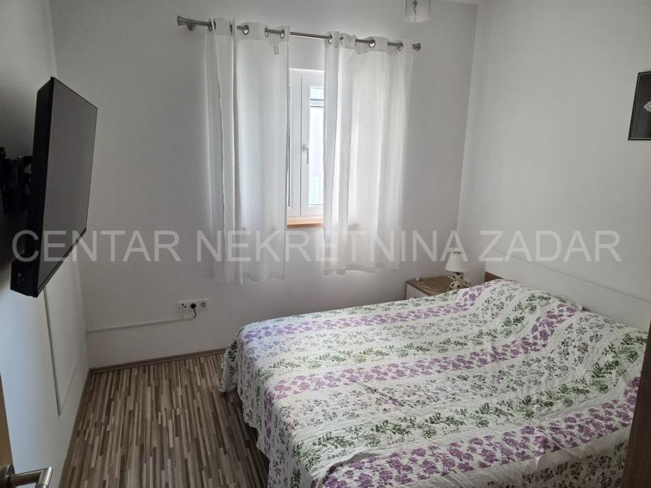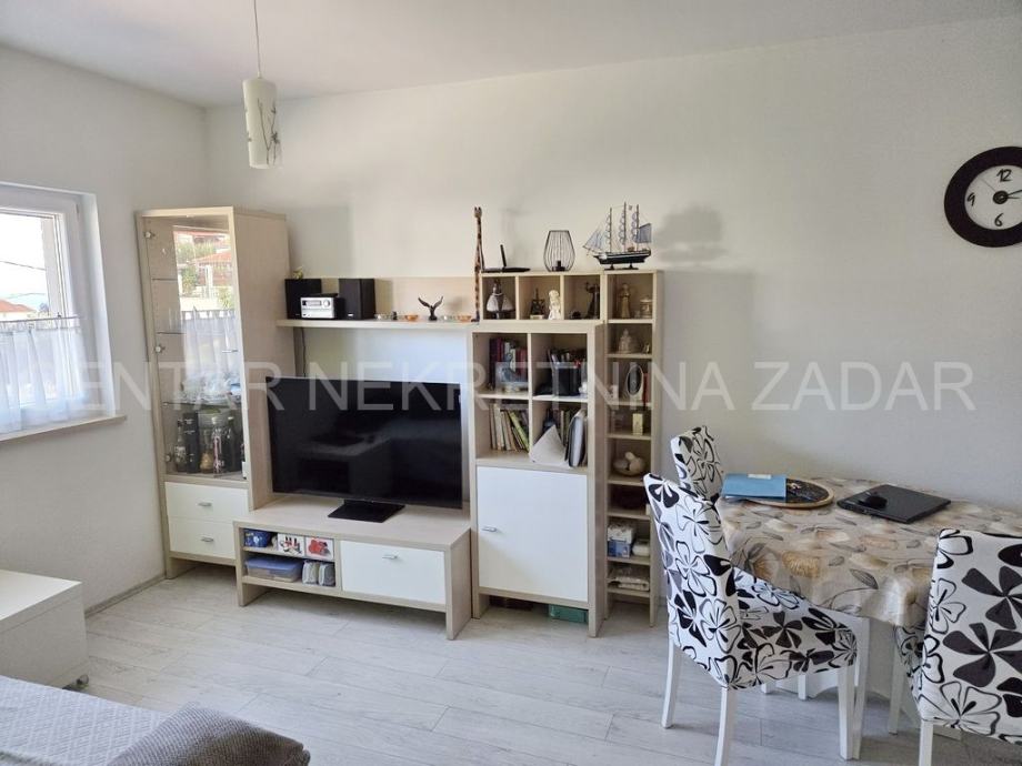 Prodaje se jednosobni apartman u mirnom dijelu Pakoštana. Nalazi se u prizemlju manje zgrade sa svega šest stambenih jedinica. Površina mu je 44,81 m² i sastoji se od ulaznog hodnika, dnevnog boravka, kuhinje s blagovaonom, jedne spavaće sobe, prostrane kupaonice i natkrivene terase. Pripada mujedno parkirno mjesto i kućni vrt površine 104 m².