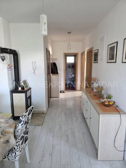 Apartman je potpuno namješten i opremljen za boravak 4-5 osoba. U kuhinji su perilica posuđa, pećnica, ploča za kuhanje itd., a u kupaonici perilica/sušilica rublja. Vlasnici poklanjaju kupcu i sve male kućanske aparate i posuđe. U blagovaoni je klima uređaj, a u dnevnom boravku dimnjak tako da se može postaviti peć na drva ili pelete.