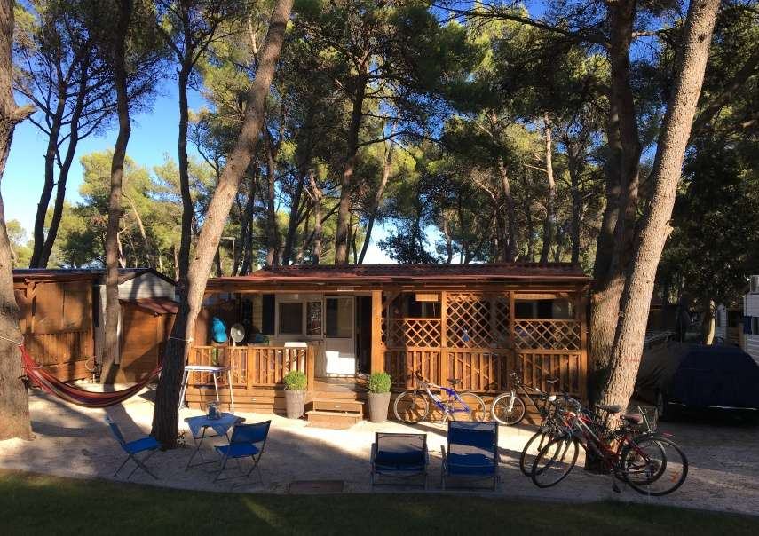 Parcela se nalazi na izvrsnoj mirnoj, sjenovitoj lokaciji, ispred kućice nema susjeda, udaljena je od plaže cca 200 m. Pored kućice je parkirno mjesto za jedno vozilo, veći pomoćni prostor za pohranu npr. alata i bicikala,... U godišnji paušal su uključeni i troškovi struje i vode te 15 gostujućih gostiju. Kućica je bila u upotrebi samo za vlastite potrebe (ne pušimo) i nije se iznajmljivala - odlično je očuvana.