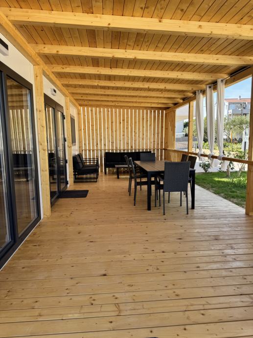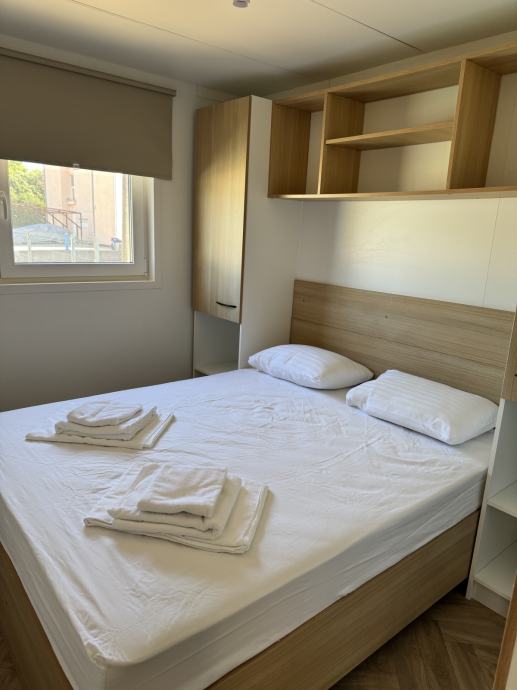 Na prodaju je nova, moderna mobilna kućica za do 6 osoba, smještena u zatvorenom kampu s bazenom u Pakoštanima.