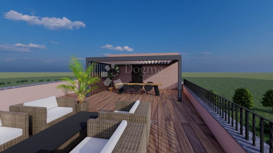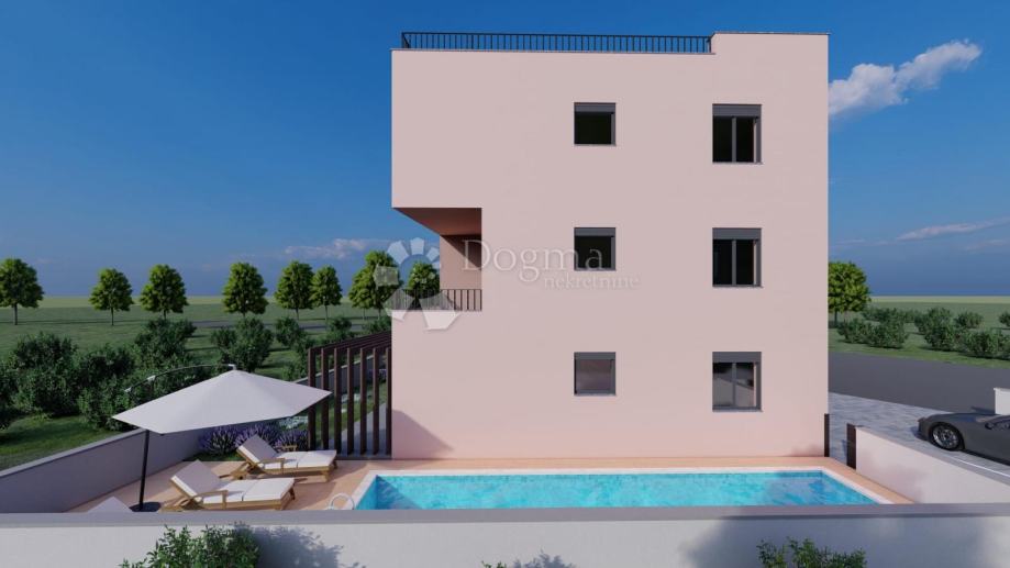 Ovaj luksuzni stan smješten je na 1. katu moderne novogradnje u mirnom dijelu Pakoštana, idealan za obiteljski život ili investiciju u turistički najam. Površine 77,49 m², sastoji se od ulaznog hodnika, kuhinje i dnevnog boravka, dvije spavaće sobe, kupaonice te natkrivenom terasom, privatnim parkirnim mjestom i jedna od glavnih prednosti ove nekretnine je bazen za zajedničko korištenje, idealan za opuštanje i uživanje tijekom cijele godine. Stan nudi visoku kvalitetu gradnje s vrhunskim materijalima.