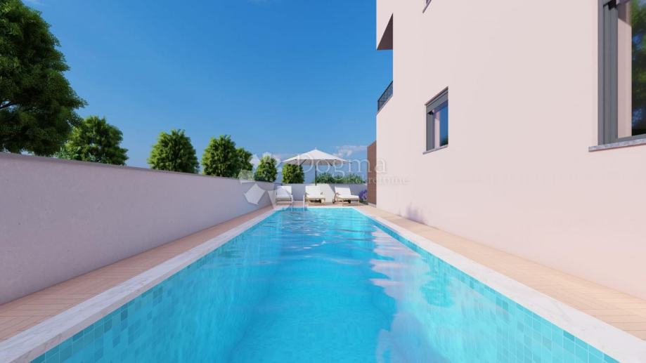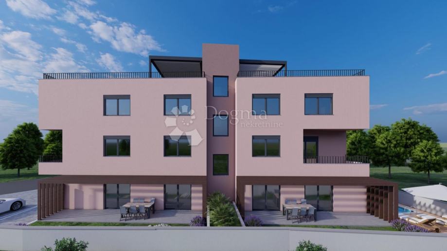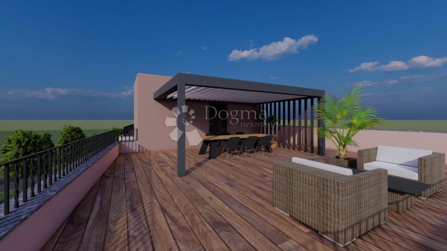 Ovaj luksuzni penthouse smješten je u modernoj novogradnji u mirnom dijelu Pakoštana, idealan za obiteljski život ili investiciju u turistički najam. Površine 92.97 m², sastoji se od ulaznog hodnika, kuhinje i dnevnog boravka, dvije spavaće sobe, kupaonice te krovnom terasom (77,16 m²), privatnim parkirnim mjestom i bazen za zajedničko korištenje, idealan za opuštanje i uživanje tijekom cijele godine. Stan nudi visoku kvalitetu gradnje s vrhunskim materijalima.