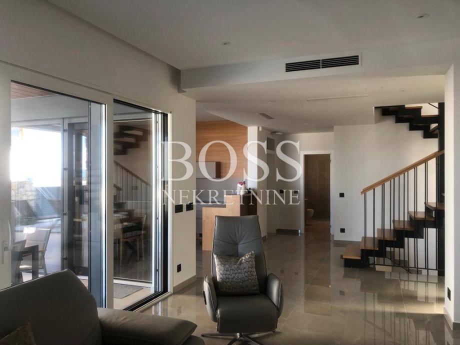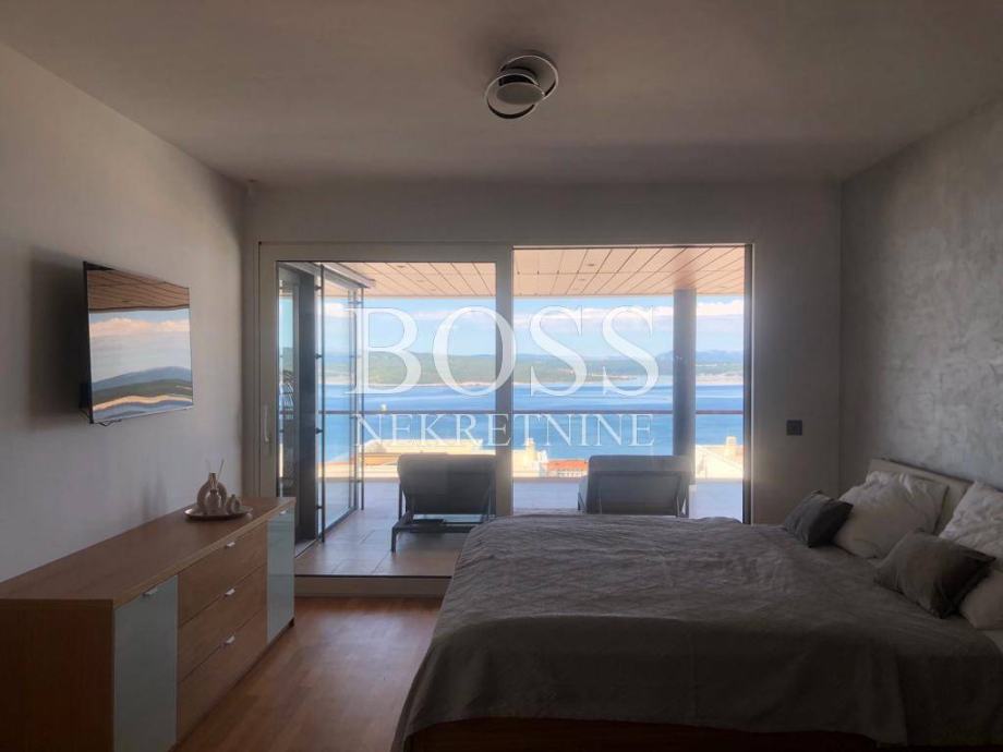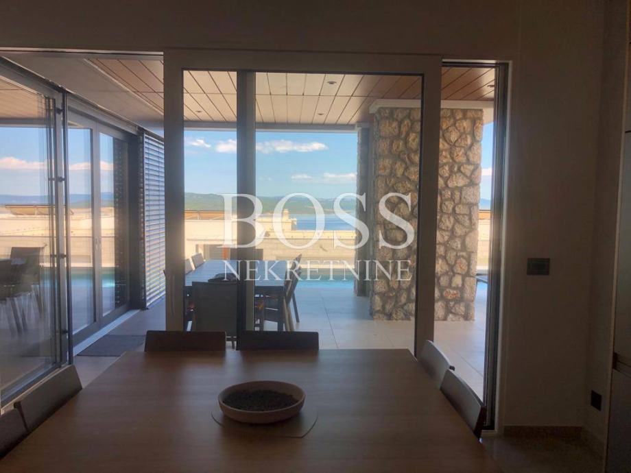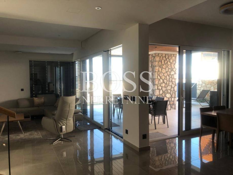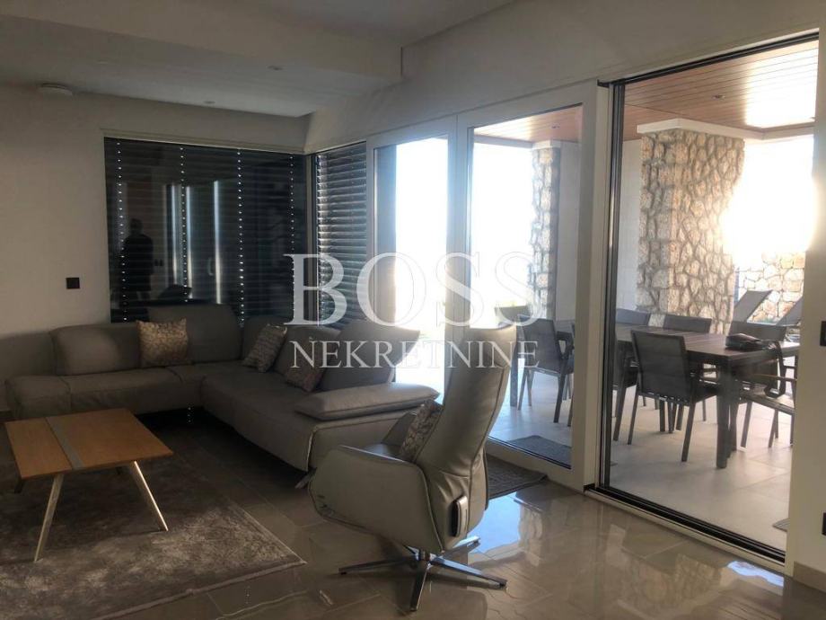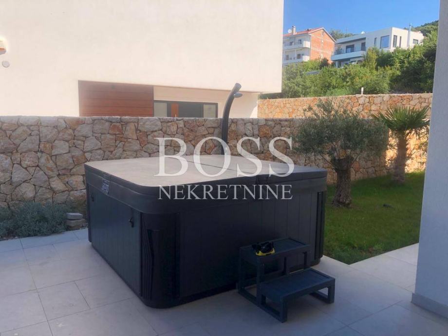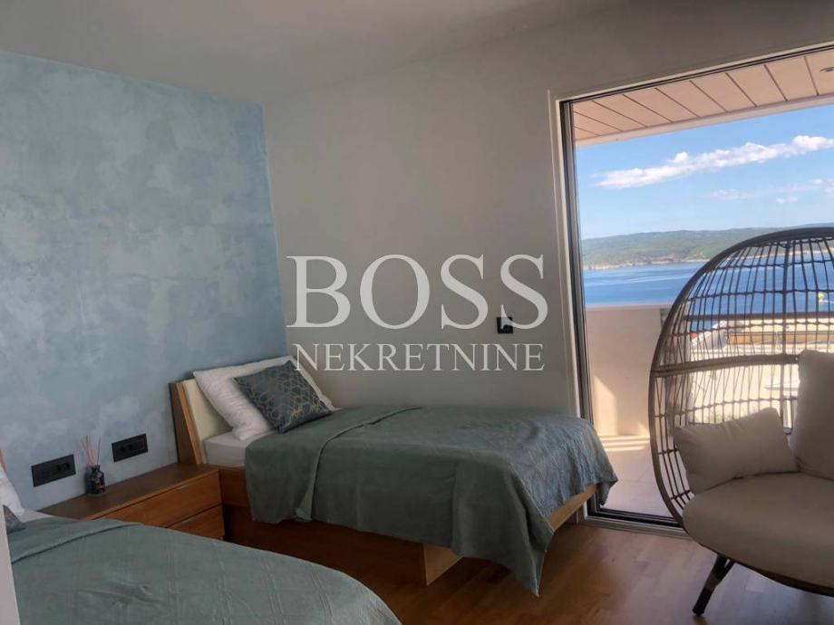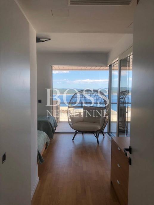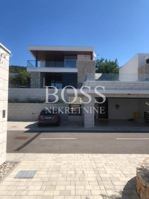 Na lijepoj i mirnoj lokaciji u Crikvenici prodaje se vila koja je opremljena sustavom pametnih kuća, upravljanje preko mobilnih aplikacija dizalicama topline (podno i kanalno hlađenje), alarmnim sustavom, sustavom vizualnog nadzora, protuprovalnim šifriranim vratima, roletama na struju, upravljanje rasvjetom, upravljanje režimom rada bazena i upravljanje navodnjavanja okućnice. Materijali koji su korišteni u gradnji vile su vrhunske kvalitete od renomiranih proizvođača, aluminijska stolarija s podizno zakretnim električnim roletama kao i troslojnim toniranim staklima. Fasada objekta na razini energetskog razreda A+. Podovi su popločeni vrhunskom talijanskom keramikom, osim u sobama gdje je postavljen vrhunski troslojni parket. Zidovi su obojani bojama vrhunskih proizvođača s detaljima koji su okrečeni dekorativnom tehnikom. Unutarnja stolarija kombinacija je drveta i stakla, unutarnje stepenice tzv. lebdeće stepenice sa staklenom ogradom. Elektro oprema modularni prekidači i utičnice, rasvjeta dizajnerskog karaktera od koje je jedan dio unikata. Interijer je opremljen trendovskim namještajem, kuhinja s Miele aparatima. Svaka spavaća soba ima svoju kupaonu s toaletom. Wellness oaza, prostrane terase s otvorenim pogledom na more već iz prizemlja. Eksterijer je izveden kako bi se postigla maksimalna diskrecija, ozelenjen autohtonim biljem maslina, lavande, vanjski grijani bazen, sunčalište, natkrivena terasa za odmor, te prostorom za pripremu hrane. Vila ima duplu garažu opremljenu brzim kućnim elektro punjačem za osobna vozila i 2-3 parkirna mjesta. Nekretnina vrijedna pažnje. Boss, kontakt: 091/377-1010