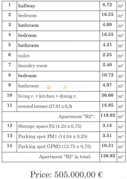 Stan od 100 m² + velika natkrivena terasa 37,91 m² pruža savršeno mjesto za uživanje u mediteranskom životu i prekrasnim zalascima sunca.