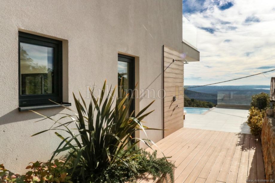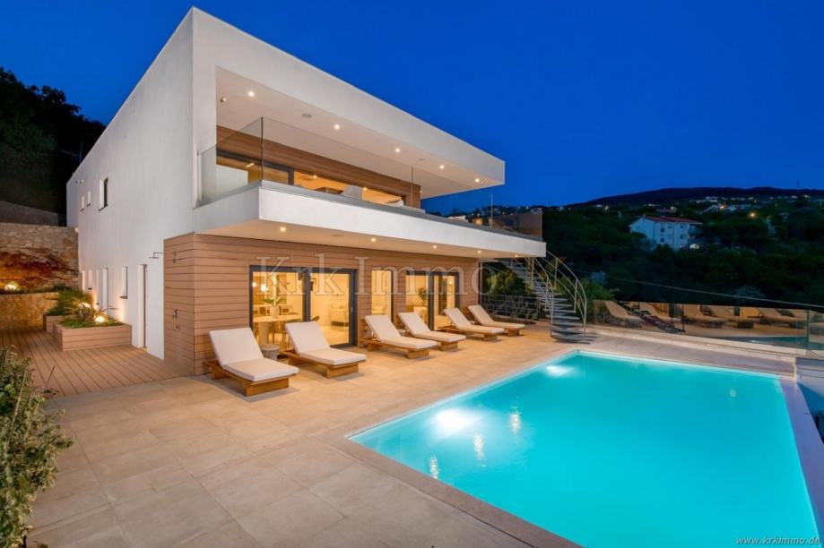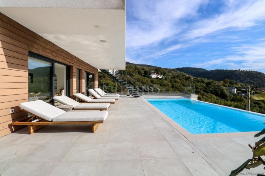 Na prodaju je moderna samostojeća villa u okolici Rijeke, smještena na povišenoj lokaciji u Hreljinu s prekrasnim panoramskim pogledom na more. Ova ekskluzivna nekretnina prostire se na ukupno 400 m² kroz više etaža, a dizajnirana je i namještena s posebnom pažnjom na luksuz i funkcionalnost.