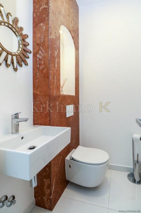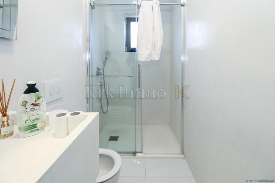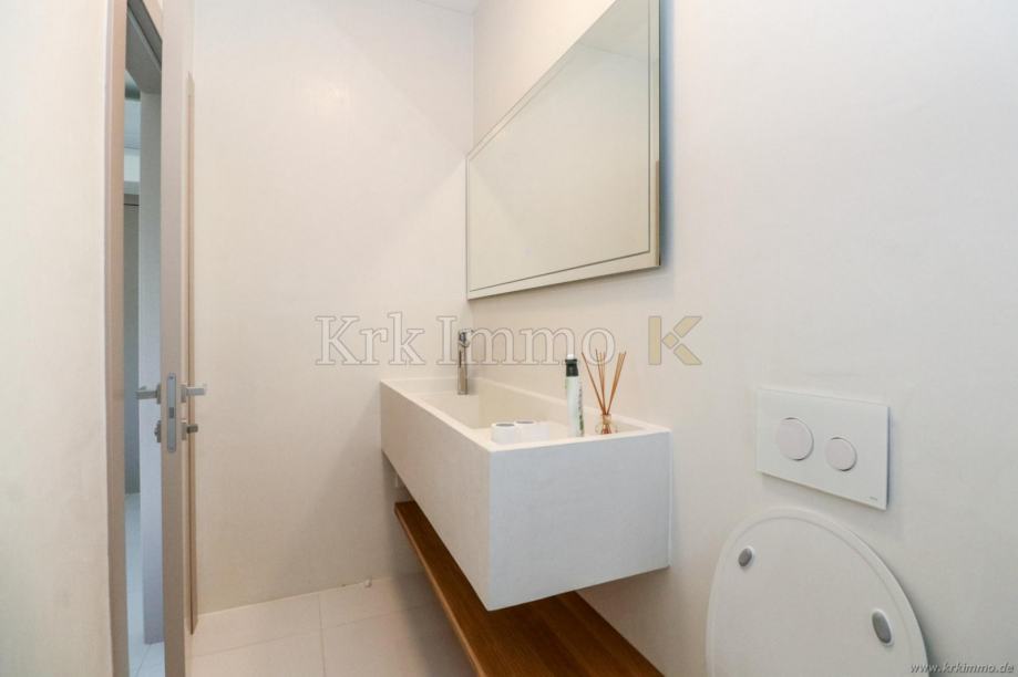 U suterenu se nalazi wellness zona s finskom saunom, jacuzzijem i prostorom za fitness, pružajući prostor za relaksaciju. Unutarnje stepenice vode u prizemlje koje obuhvaća hodnik, WC, dvije prostrane spavaće sobe, svaka s vlastitom kupaonicom i izlazom na uređenu okućnicu, moderni vešeraj od lakiranog medijapana opremljen perilicom i sušilicom Miele.