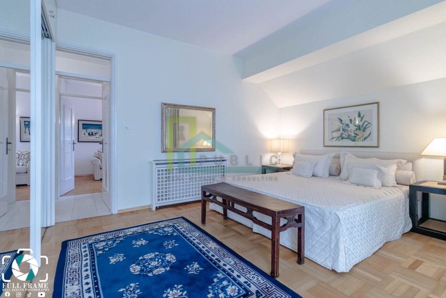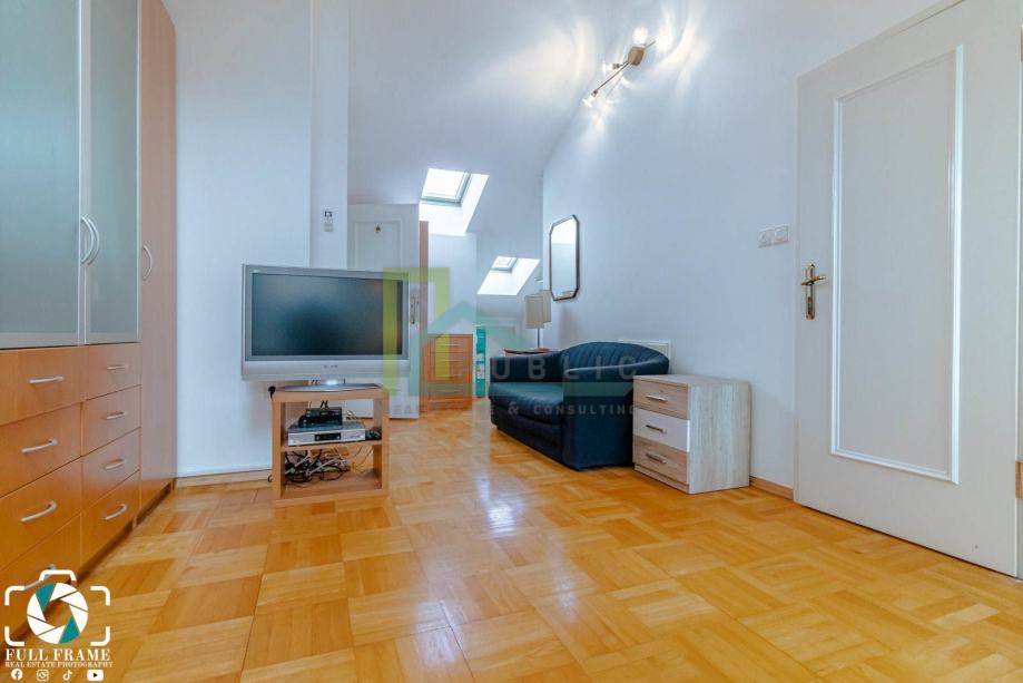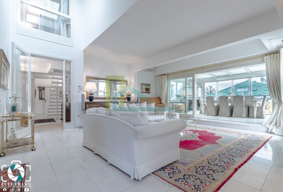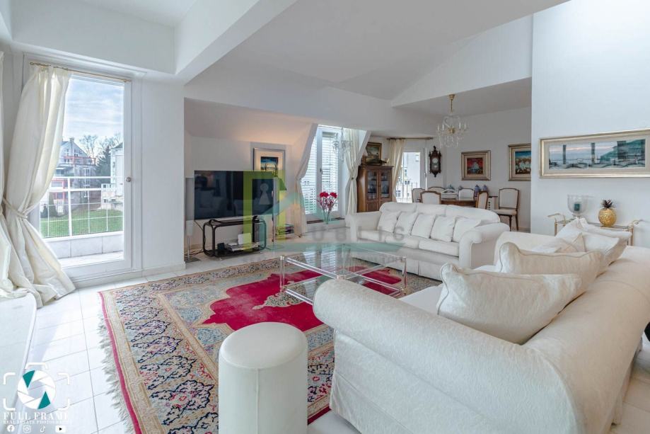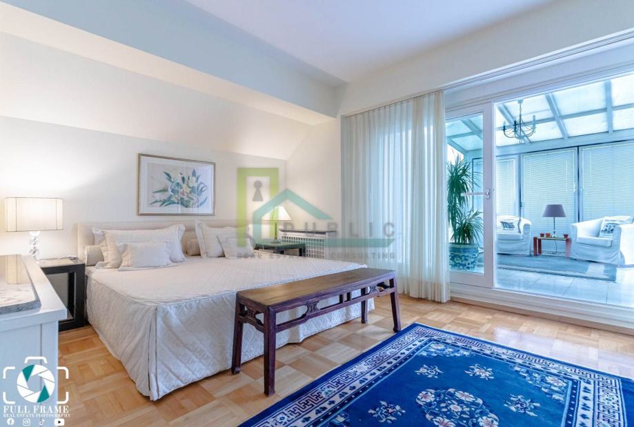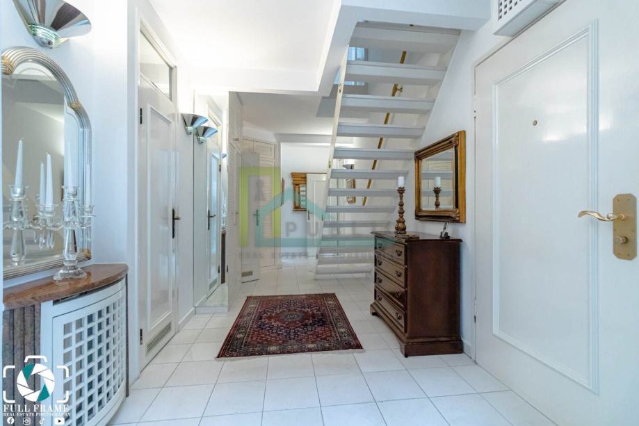 Iznajmljuje se luksuzan dvoetažni četverosoban stan površine 170 m2 na prvom katu stambene zgrade na Pantovčak.