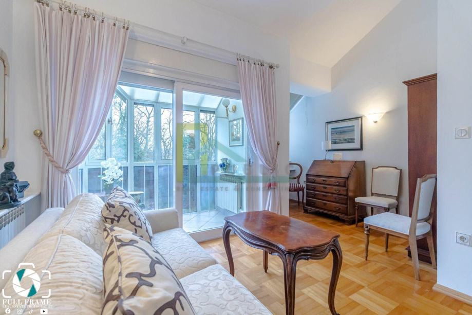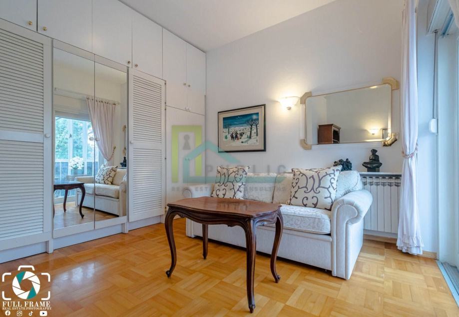 A luxurious two-story three-bedroom apartment of 170 m2 is for rent on the first floor of a residential building in Pantovčak.