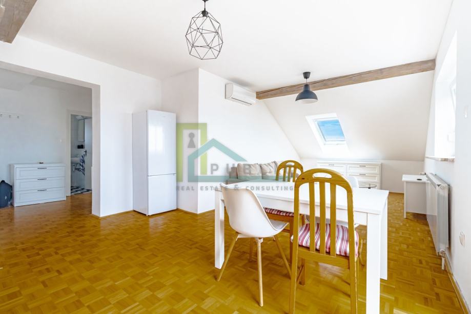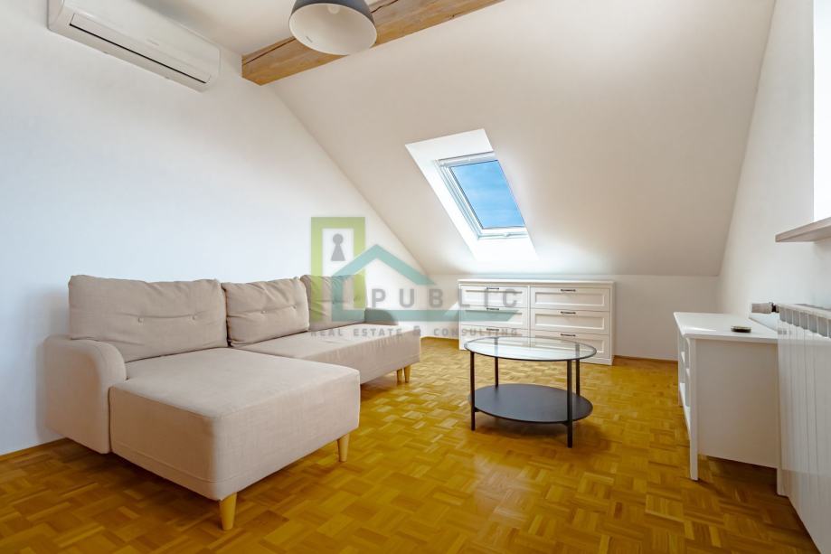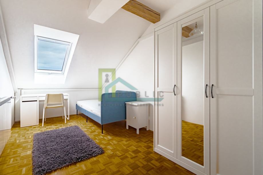 Iznajmljuje se prekrasan trosoban stan površine 75 m2 na 2. katu/visokom potkrovolju privatne kuće s posebnim ulazom na Pantovčaku.