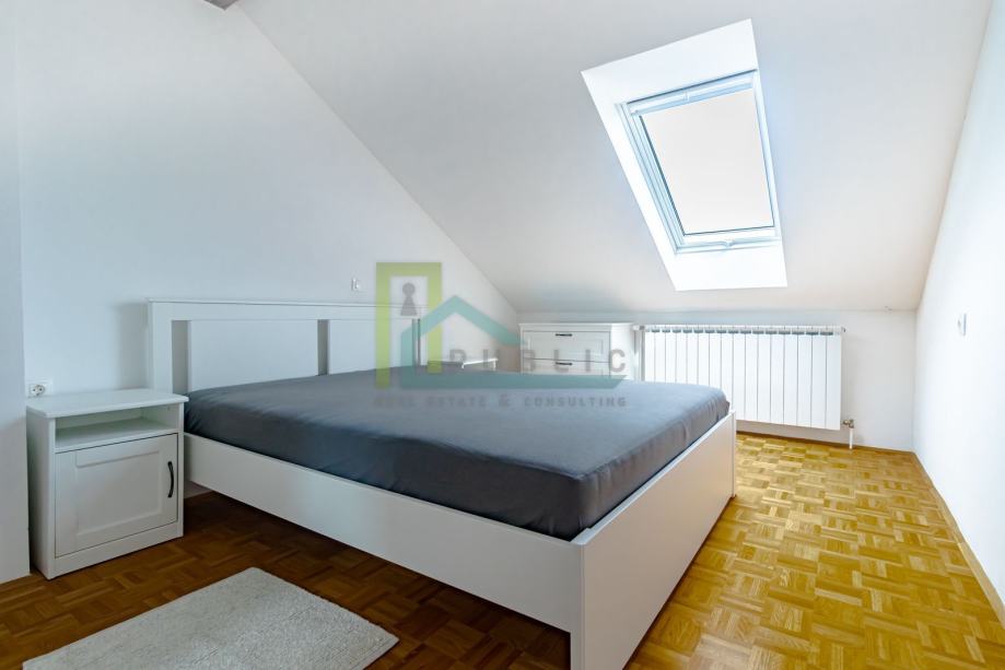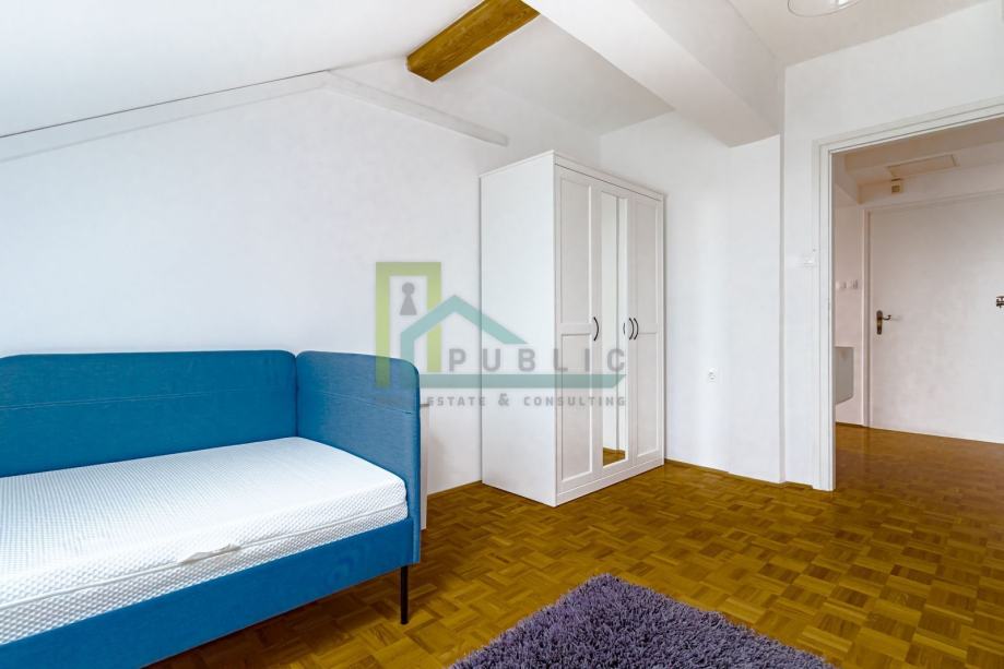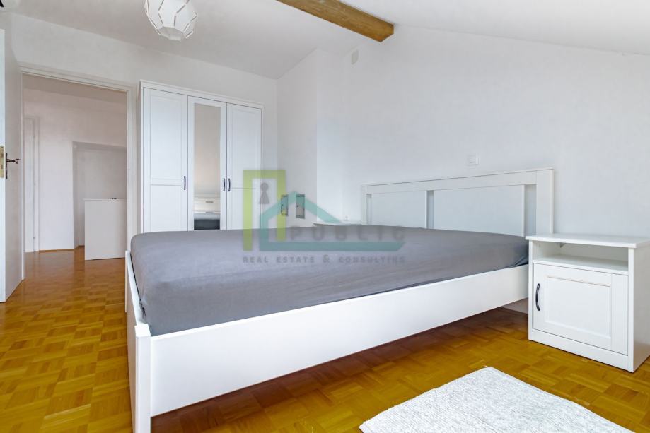 Watch the video of the apartment under the section VIDEO or on the YouTube link: https://youtu.be/PMcUVY_4RJ8 A beautiful two-bedroom apartment of 75 m2 is for rent on the 2nd floor / high attic of a private house with a separate entrance in Pantovčak. The apartment consists of: - entrance hall, - large living room with dining area and kitchen, - two bedrooms, - bathrooms, - pantry, - balcony. The apartment has one outdoor parking space in the yard of the house. Excellent and attractive location; proximity to buses; proximity to all necessary facilities. Minimum rent 12 months. Deposit in the amount of one month's rent.