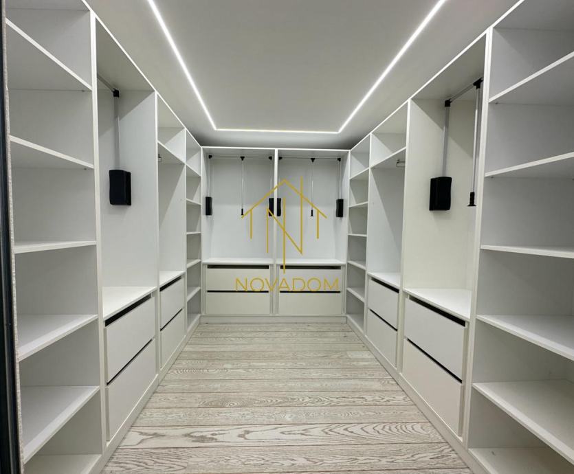 I kat: open space dnevnog boravka s vrhunski namještenom kuhinjom, terase, kupaone s wc-om, velike sobe,vešeraja i kotlovnice s ulazom u garažu.