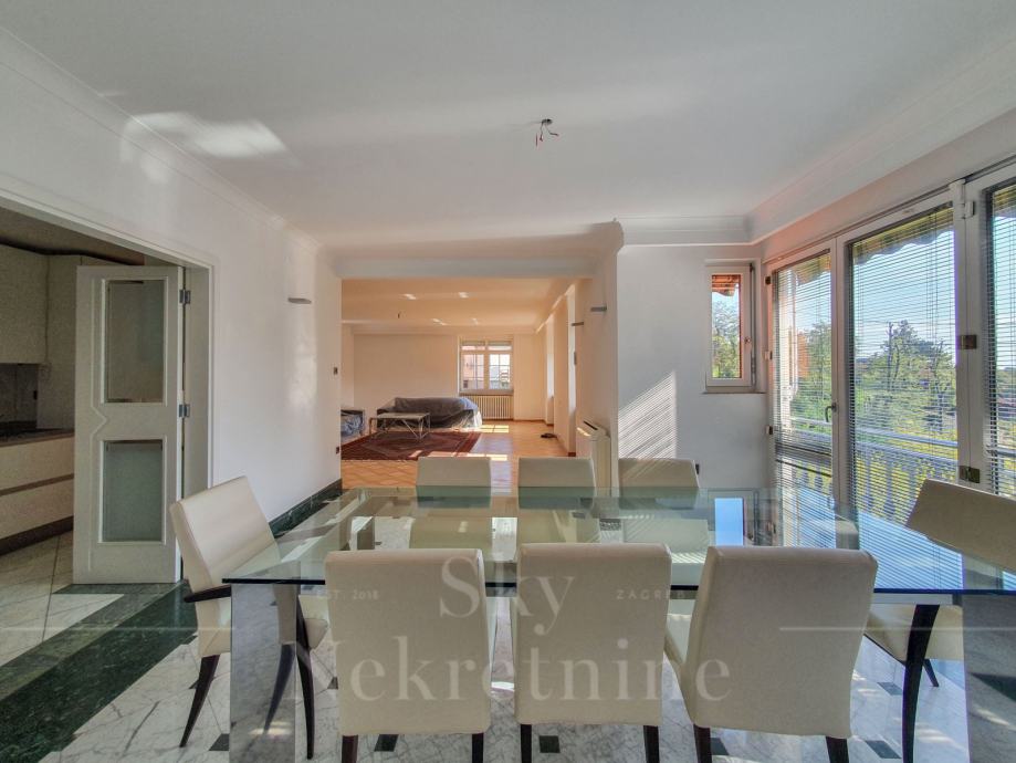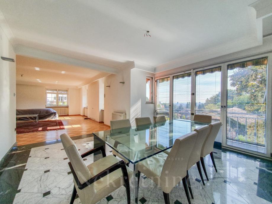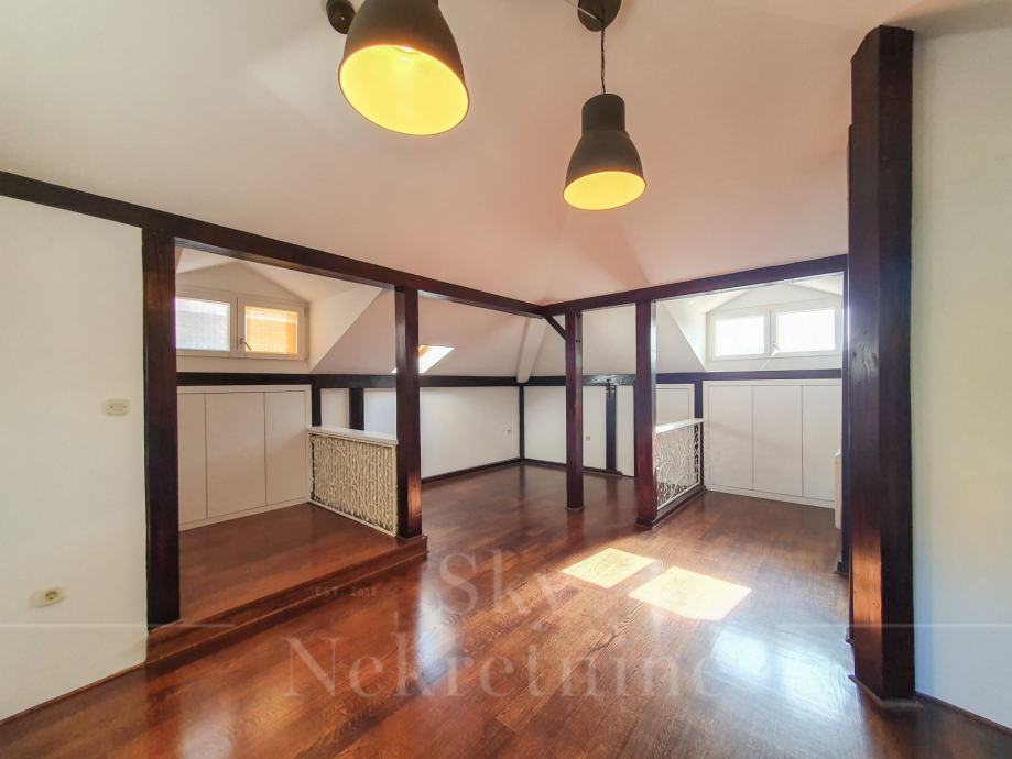 Sky nekretnine predstavljaju komforan peterosoban stan u Kozarčevoj ulici, okružen zelenilom s otvorenim pogledom na grad.Dvoetažan luksuzan stan nalazi se u zgradi iz 2001. godine, na drugom i trećem katu, povezan unutarnjim stepeništem.Na drugom katu stan se prostire na 170m2 (hodnik, veliki dnevni boravak povezan s blagovaonicom, kuhinja s ostavom, spremište pod stepenicama, 3 spavaće sobe i 2 kupaonice), dok se u potkrovlju nalazi dodatnih 58m2 open space prostora s kupaonicom.U prizemlju se nalaze 2 garažna mjesta te parkirna mjesta ispred garaže, a u drugom dijelu zgrade još dodatni dvosobni stan površine 47m2 koji se može koristiti kao teretana/ured/prostorija za zabavu.____________- orijentacija - jug/istok/sjever- grijanje - centralno etažno plinsko- stolarija - PVC- lift - ne- podovi - parket / keramika____________LICENCIRANI AGENT ZA NEKRETNINU - JURAJ- 095 769 7767* Kupac za navedenu nekretninu plaća minimalnu agencijsku proviziju u iznosu 1,5% od kupoprodajne cijene + PDV.* Za tu naknadu agencija odrađuje upis vlasništva i prebacivanje režija na kupca te svu pravnu dokumentaciju kupoprodaje.Za dodatne informacije i razgledavanje slobodno nas kontaktirajte PON-PET: 09:00-18:00, SUB: 09:00-12:00.stan, zagreb, centar, donji grad, gornji grad, peterosoban, pantovčak, kozarca, tuškanac, goljak, zelengaj