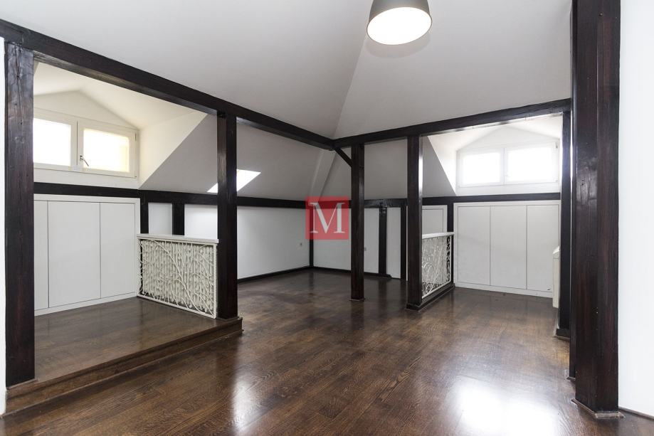 Reprezentativan uređen dvoetažan stan od 228m2 na 2. katu novije građene (pojačani standardi –izolacija dvostrukim betonskim zidovima u podrumu, potresno siguran - bez ikakvih posljedica od potresa 2020.) i odlično održavane zgrade/vile u Kozarčevoj ulici na Pantovčaku.
