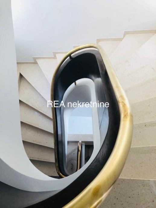 Predivne stepenice spajaju sve katove i daju kući poseban doživljaj. Kuća je izuzetno kvalitetno građena izvrsnim materijalima, beton, puno drvo, kamen... Nikakva veća rekonstrukcija nije potrebna osim “ušminkavanje” prema vlastitim potrebama.