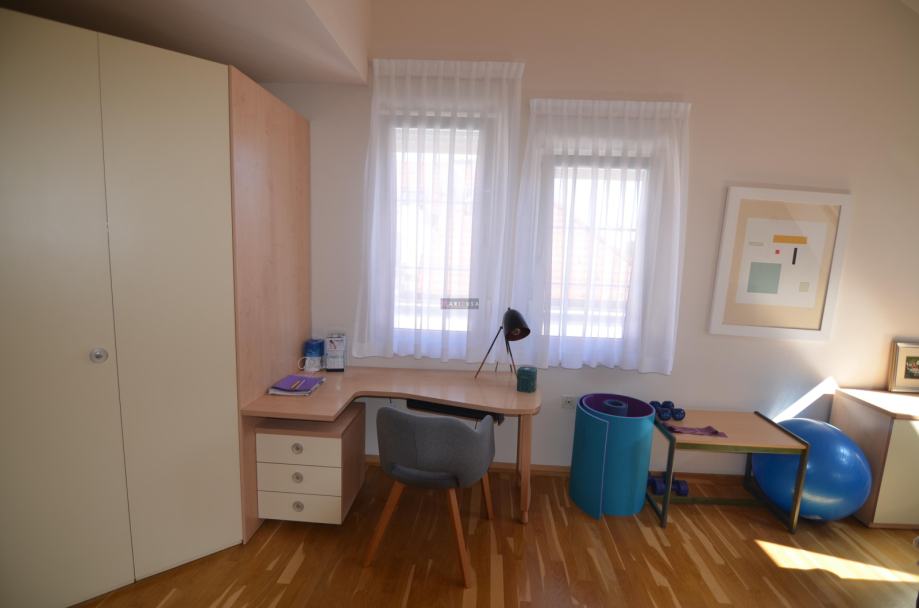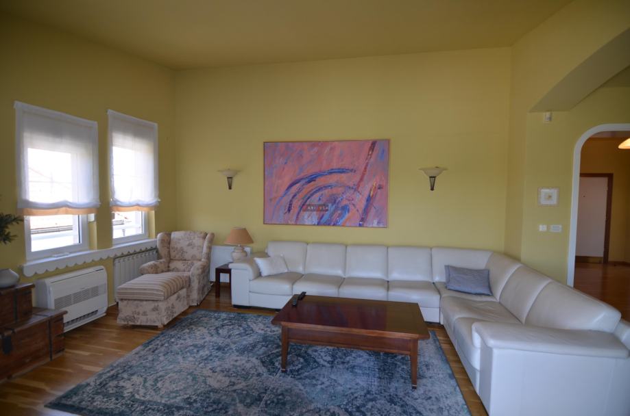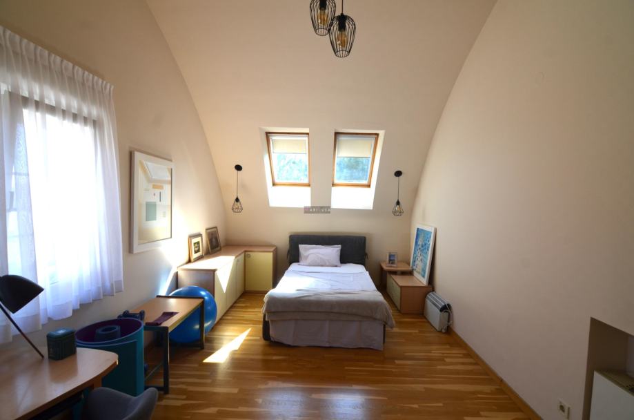 Iznajmljuje se prekrasan penthouse površine 170 m2 u manjoj stambenoj zgradi u mirnoj ulici na Pantovčaku.Stan se nalazi na drugom katu zgrade, orijentiran na sve 4 strane svijeta, prepun svijetla s predivnim pogledom na zelenilo.Sastoji se od prostranog ulaznog hodnika sa ulazom u dvije spavaće sobe i kupaonice, glavne spavaće sobe s zasebnom kupaonicomi walk-in tuš kabinom, prostrane kompletno opremljene kuhinje sa blagovaonicom i dnevnim boravkom te izlazom na prekrasnu terasu.Stanu pripada garaža te vanjsko parkirno mjesto, i spremište u podrumu. Mirno okruženje nadomak grada na elitnoj lokaciji!