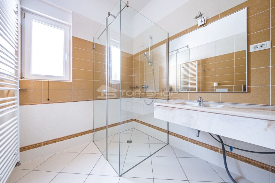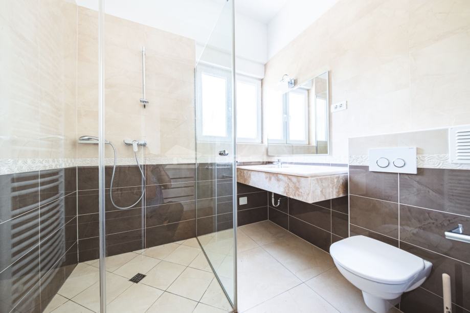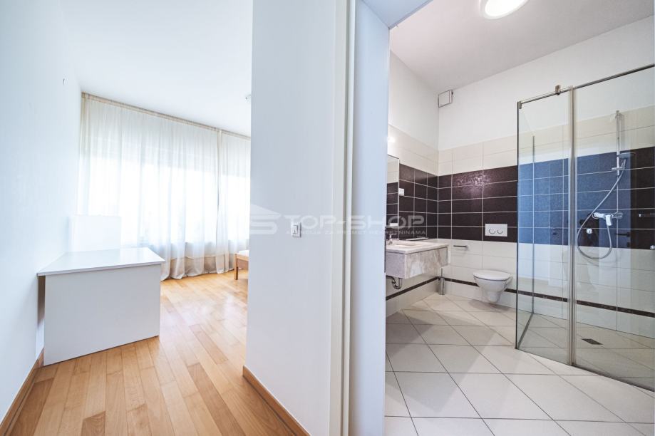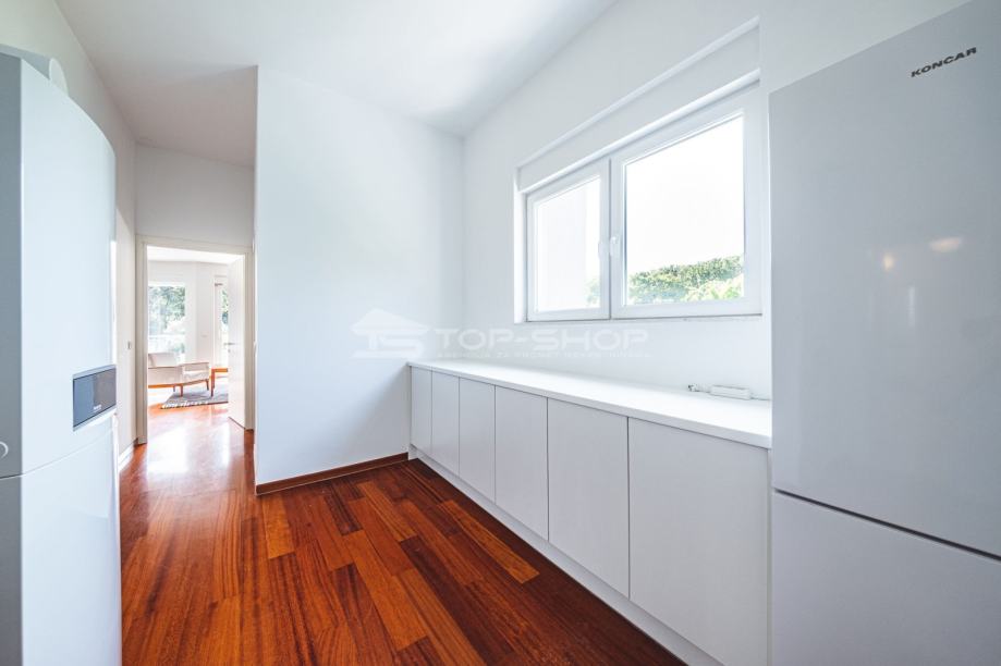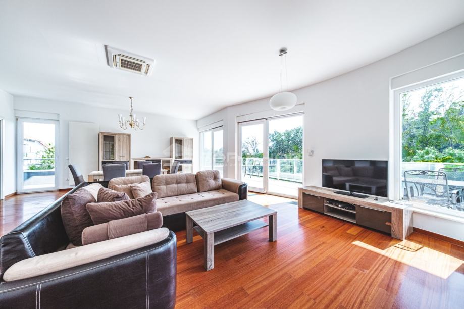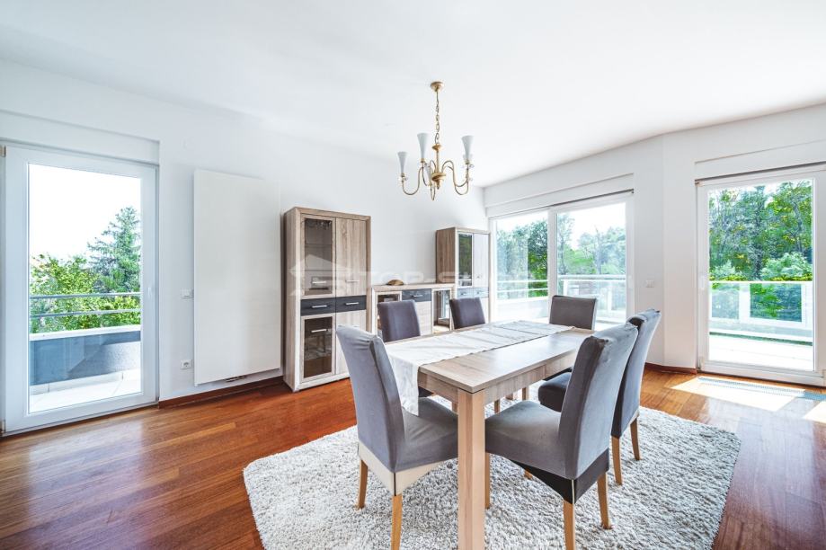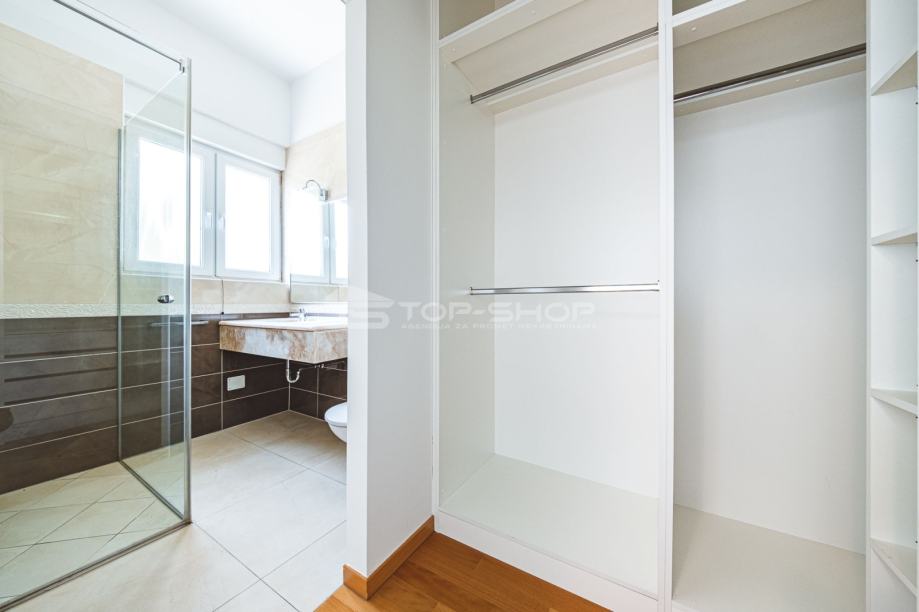 Stan se nalazi izuzetnoj luksuznoj lokaciji u mirnoj ulici prepunoj zelenila, a svega par minuta autom do centra grada. svijetao radi svoje četverostrane orijentacije te velikih staklenih stijena sa puno dnevnog svijetla, PVC stolarija, klima, protuprovalna vrata, alarm, video nadzor, video portafon...