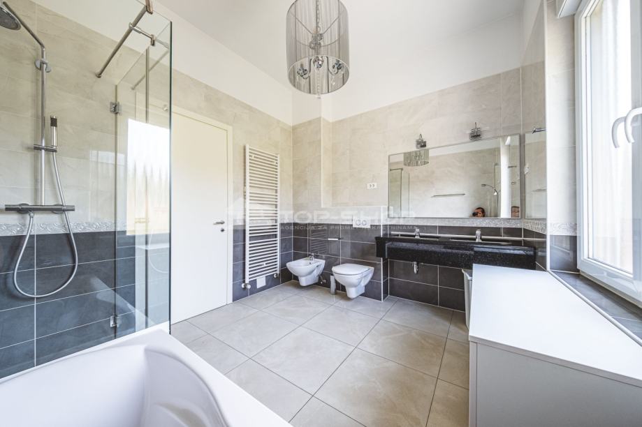 U prizemlju zgrade se nalazi prostorija sa saunom i jacuzzijem te izlazom na prekrasan vrt.