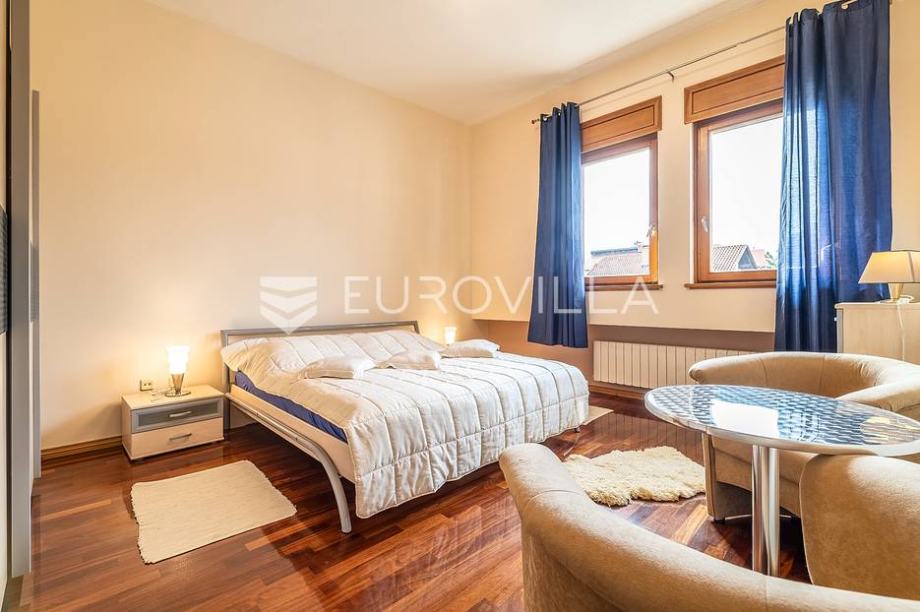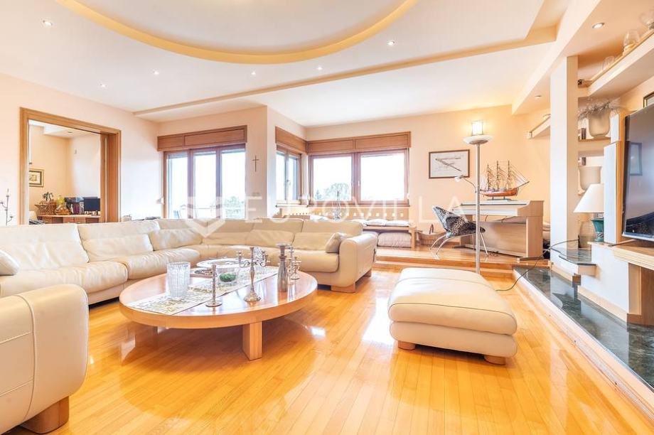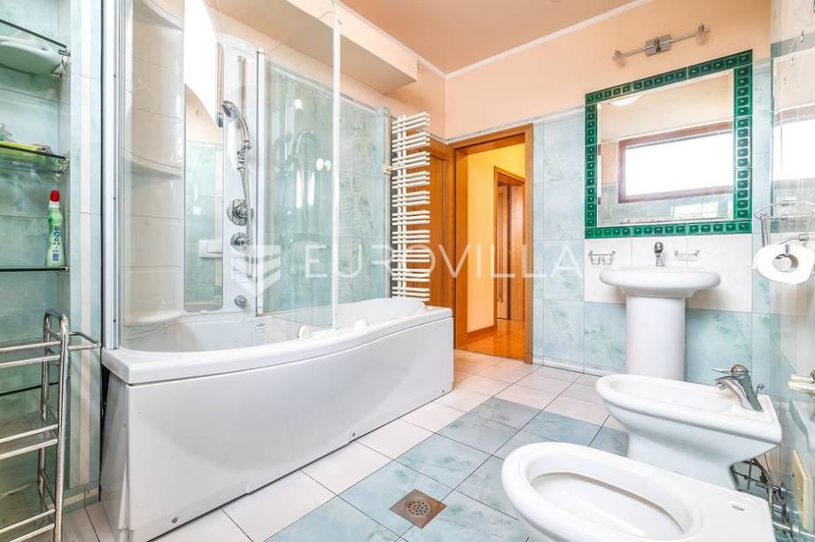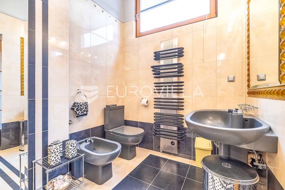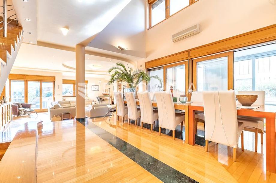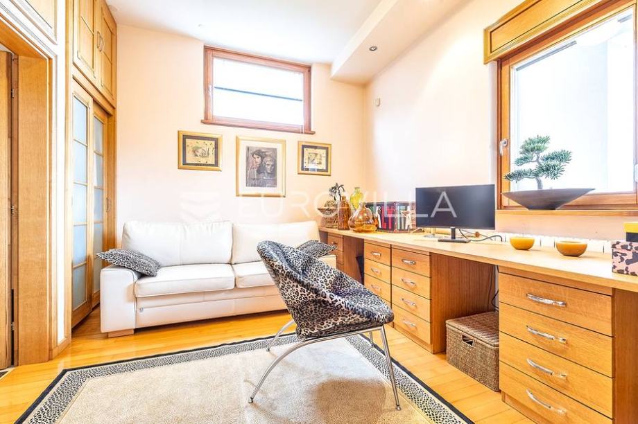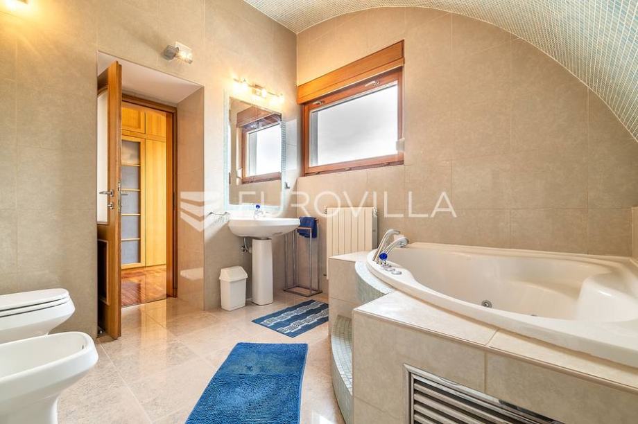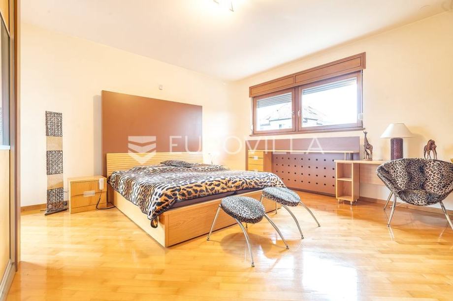 Kat: master spavaća soba s kupaonicom, garderobom i terasom, odvojen dječji spavaći dio sa 3 spavaće sobe i kupaonicom.