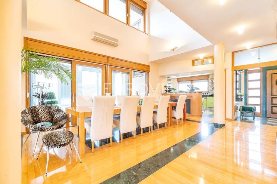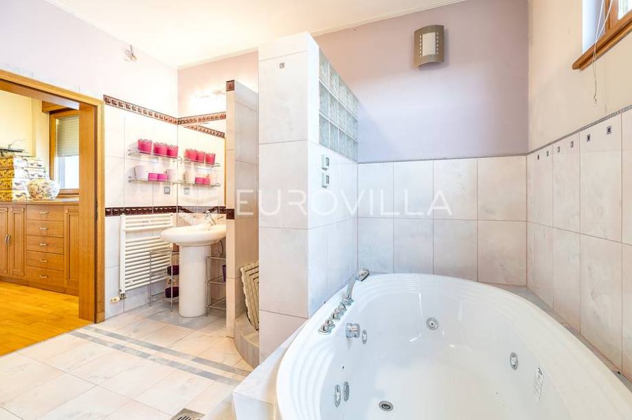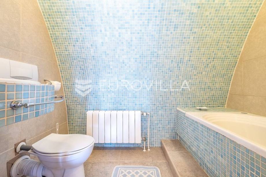 Vila je sagrađena 2008 god. Izuzetno kvalitetna gradnja, korišteni najbolji materijali. Fasada STO, vanjska stolarija drvo (hrast) sa dvoslojnim staklom, grijači sakupnog žlijeba, grijači stepenica i rampe za automobil, grijanje plin (radijatori), klima kanalna sa 3 vanjske jedinice), žlijeb za prljavi veš, parket egzota, jasen, hrast, kamen, namještaj po mjeri i dizajnerski namještaj, videonadzor (7 kamera), alarm, 3 kamina, bazen prelivni sa 4 reflektora, mlaznicama i pripremom za protustrujno plivanje, vanjska kućica sa roštiljem i krušnom peći, vanjski tuš i toalet.