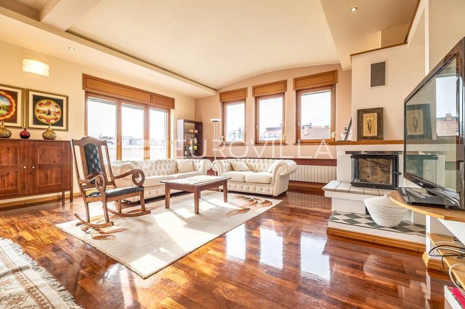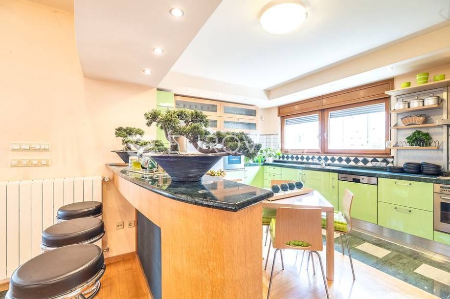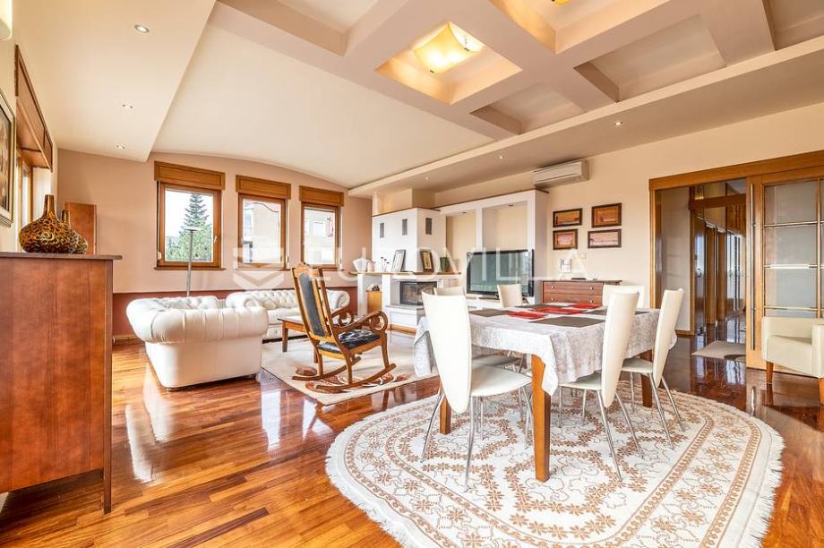 2 kat: odvojen komforan trosoban stan 185m2 sa velikom terasom i panoramskim pogledom na grad. Ovaj stan ima odvojena brojila plina i struje.
