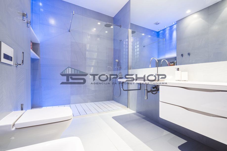 Treći kat veličine 98 kvadrata sastoji se od unutarnjeg bazena veličine 23 m2, saune, kupaonice, garderobe i terase.