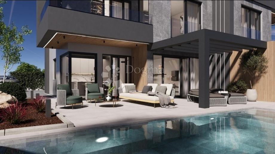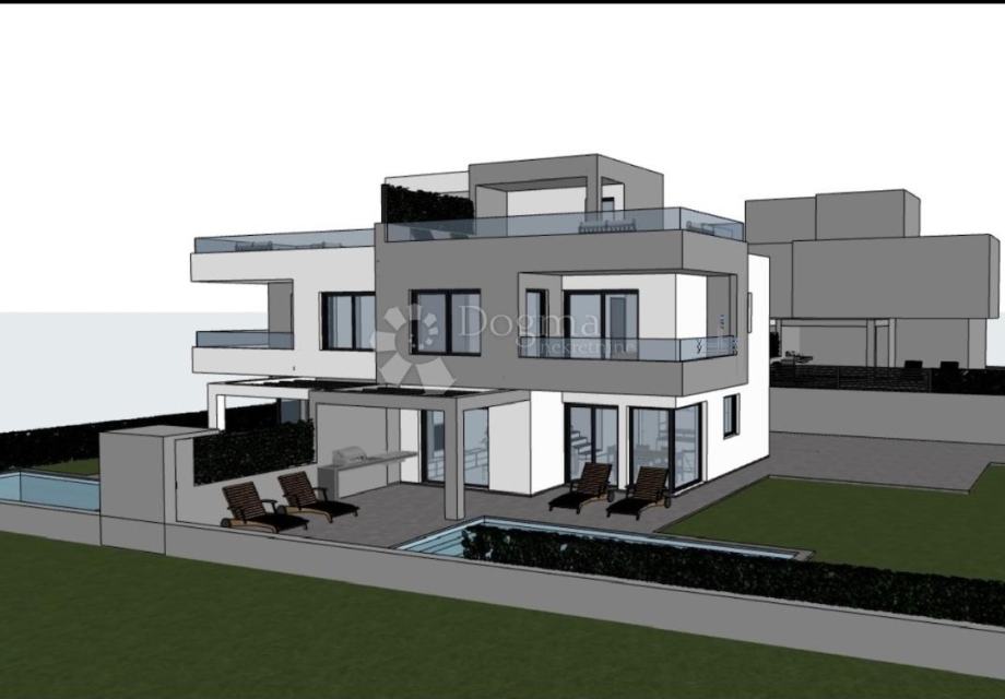 Planirana nekretnina je originalnog dizajna, gdje svaka kuća ima svoju krovnu terasu, parking i bazen.
