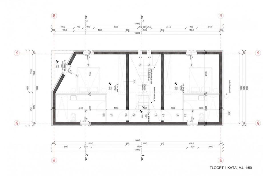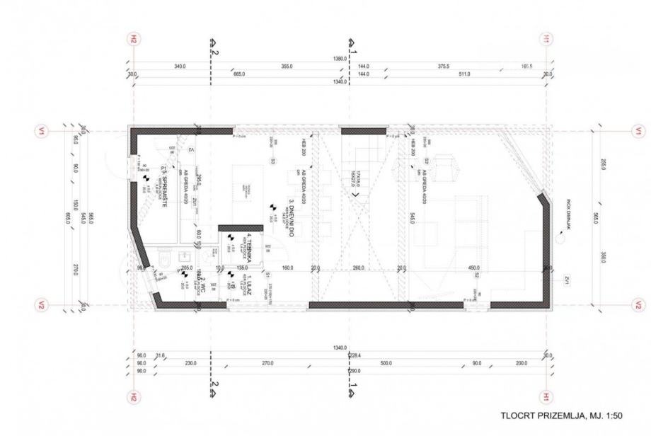 Građevinska dozvola je izdana za obiteljsku kuću od 135 m2, koja se sastoji od prizemlja i kata.