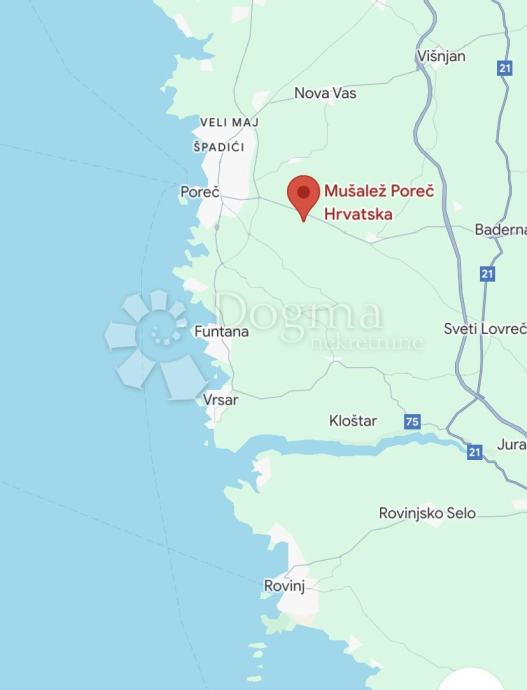 Mediteranska parcela locirana je u naselju Mušalež, samo 2 km udaljena od mora i obala Poreča. Ova poljoprivredna parcela, idealna za sadnju maslina i mediteranskog bilja, pravokutnog je oblika i ravna, uz lako dostupan pristupni put.