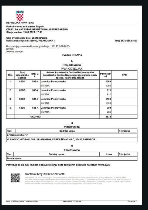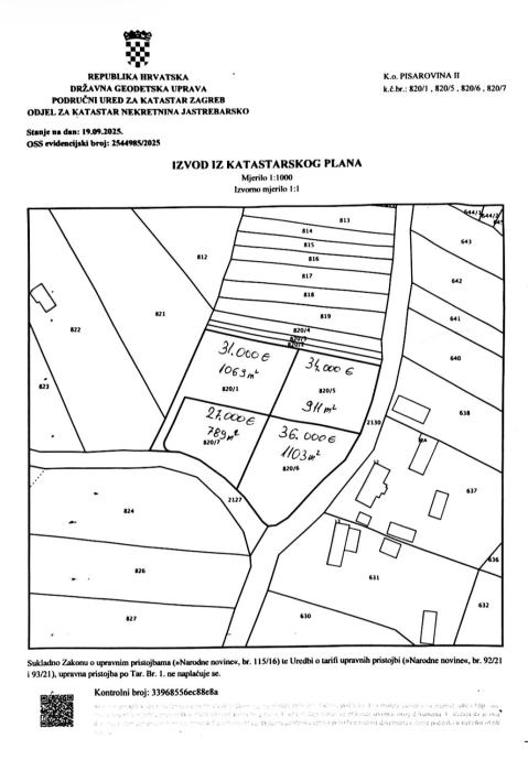 Udaljeno od Zagreba 30- ak minuta uskoro i manje posto se gradi brza cesta Zdenčina- Pisarovina, 800m od centra Pisarovine na mirnom mjestu okruzeno prirodom i lako dostupno asfaltnom cestom, nalazi se zemljište u građevinskoj zoni 100m od autobusne stanice te 1,5 km od industrijske zone. U centru pisarovine postoje svi potrebni objekti (skola, ambulanta, trgovacki centar, vrtić..). Zemljiste je parcelizirano u 19 građevinskih parcela, veličina 500-1200m2. Neke od parcela imaju legalizirane objekte (atohtone stare kuće od hrastovog drva) na kojima je odmah omogućena gradnja. Cijena ovisi o veličini parcele i ukoliko se na njoj nalazi objekat. Za sve ostale informacije nazvati na 091/3380-499.