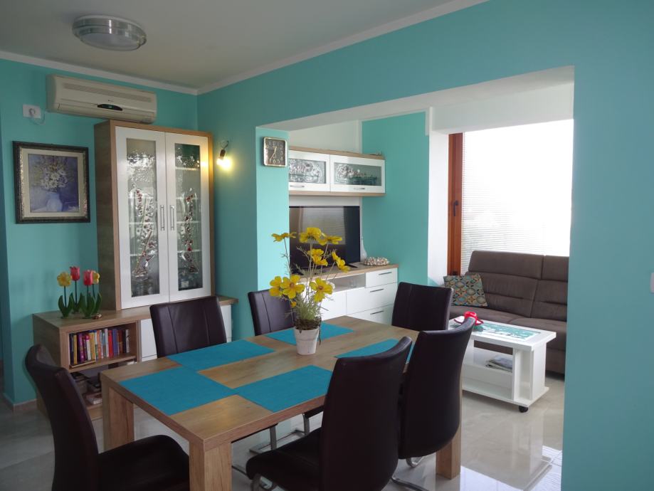 Prodaje se lijepo uređeni 60 m2 trosobni apartman u prizemlju male apartmanske zgrade u blizini mora.