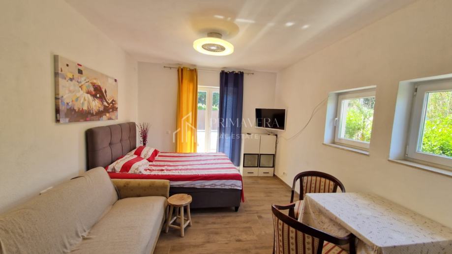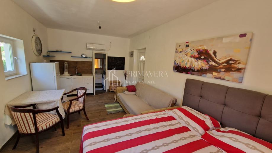 Kompletno je namještena i opremljena te se kao takva i prodaje. Renovirana je tijekom 2021. godine te su tada postavljeni i novi aluminijski prozori. Klimatizirana je sa ukupno 2 klima uređaja, a mogućnost grijanja postoji i na peć na drva.