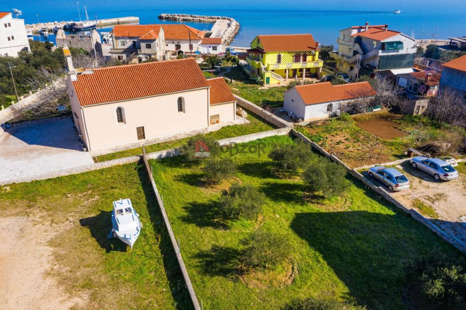 Dimenzije zemljišta su cca. 19m x 55m. Također zemljište je pravokutnog oblika i ima pristupni asfaltni put. Voda, telefon i struja su na zemljištu.
