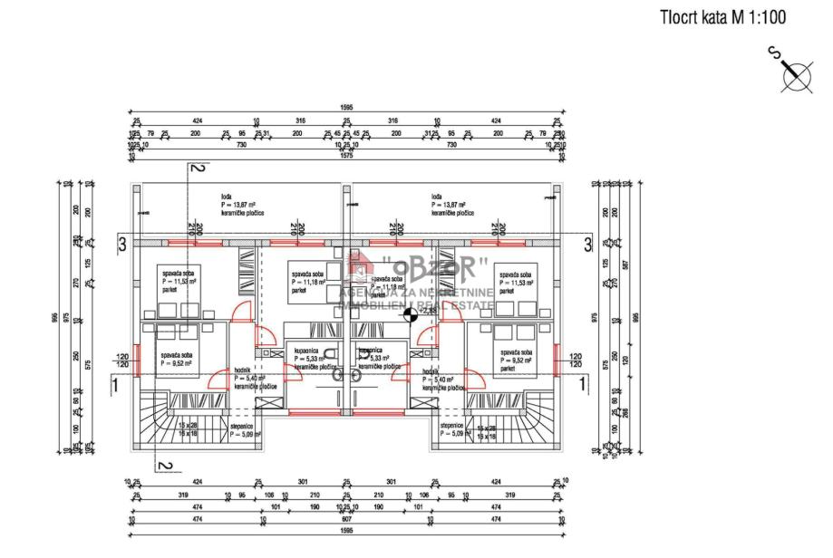 2. kat : tri spavaće sobe, hodnik, stepenište, kupaonica i lođa.