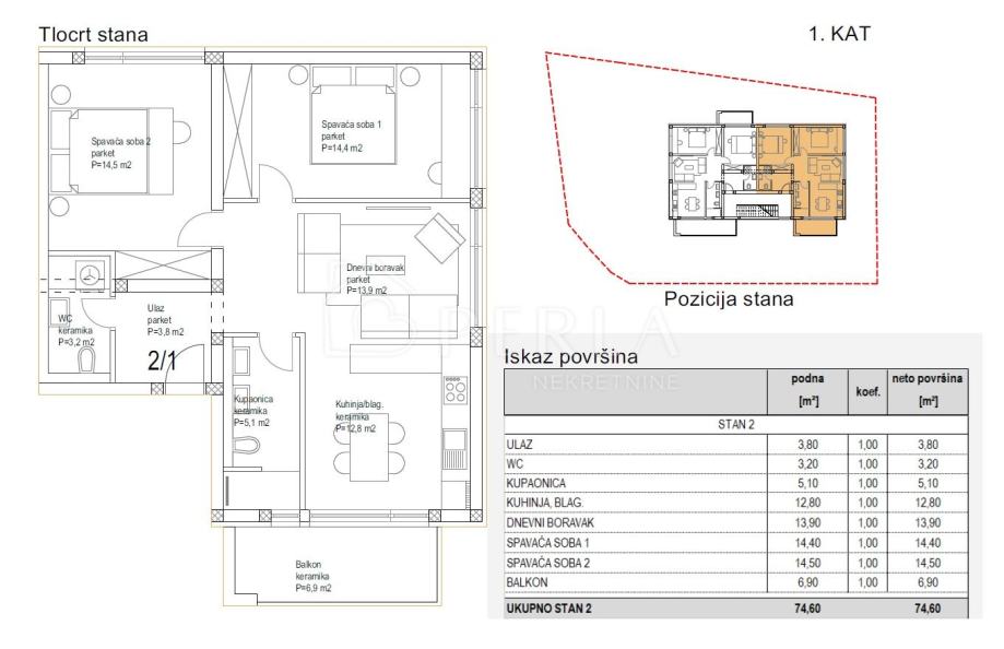 STAN 1/1 – dvosoban stan na 1.katu od 77,95 m2 = 235.000,00 €