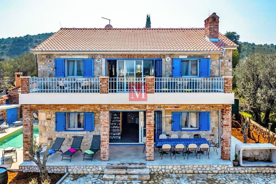 Pašman-prekrasna vila u mediteranskom stilu s bazenom prvi red do mora (prodaja)