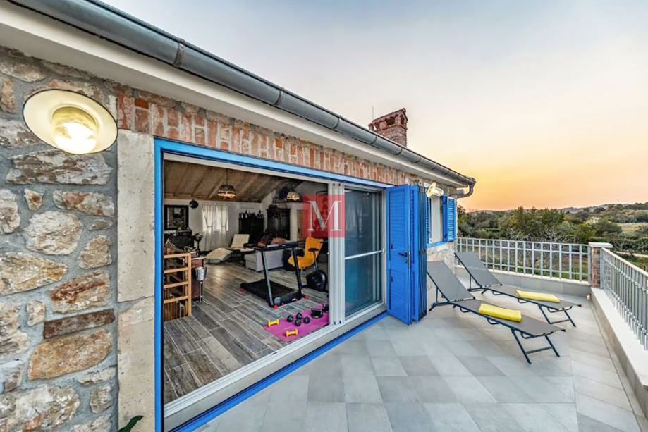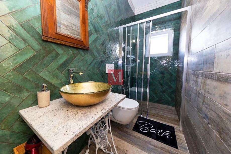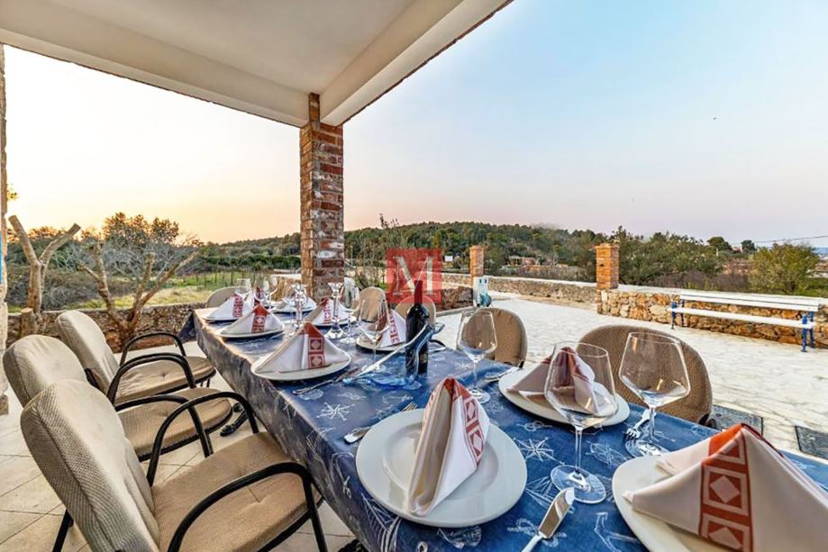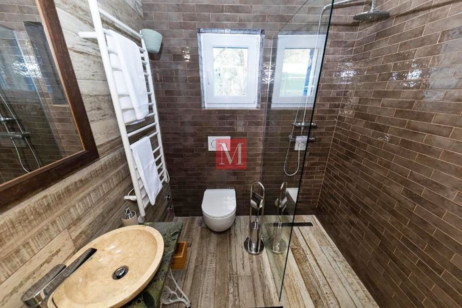 U prizemlju prostrane vile od ukupno 285m2 nalaze se 3 spavaće sobe s kupaonicama i velika dnevna soba s kuhinjom i kaminom iz koje se izlazi na prekrasnu terasu s pogledom na more. Na prvom katu nalaze se 2 spavaće sobe s kupaonicama i dnevna soba s opremom za teretanu iz koje se također izlazi na još jednu komfornu terasu sa zadivljujućim pogledom.