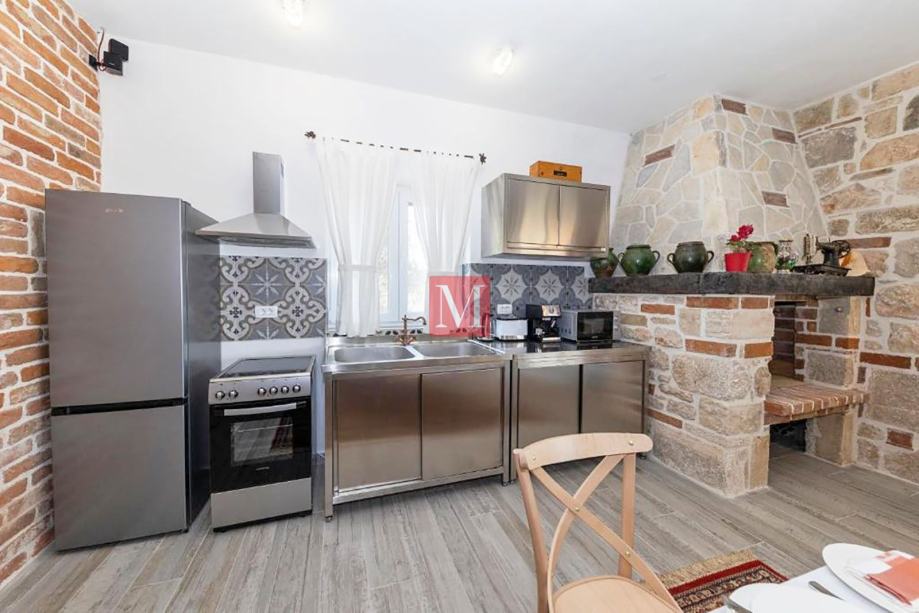 U dvorištu vile, uz bazen i roštilj, nalazi se pomoćna kućica od 20m2 s kuhinjom, kaminom i toaletom.