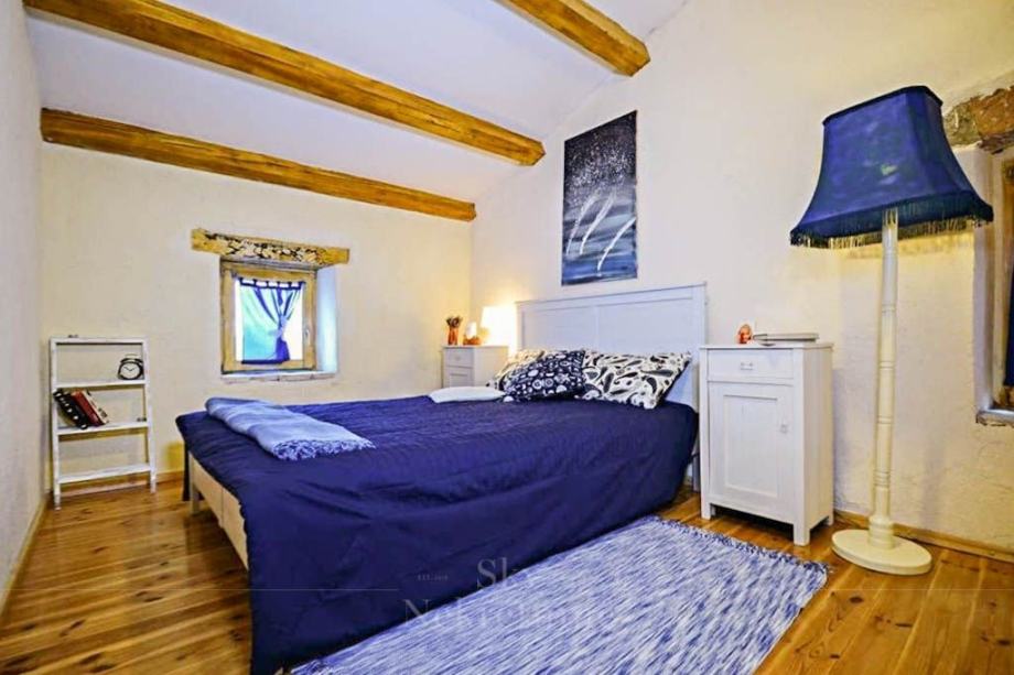 Kuća je potpuno integrirana u okoliš te sa svojih 61 m2 površine sastoji se od prizemlja na kojem se nalazi kupaonica, kuhinja, dnevni boravak i blagovaonica. U unutarnjem dijelu kuće stepenice vode na kat gdje se nalaze dvije spavaće sobe sa prekrasnim pogledom na Učku.