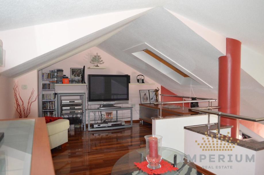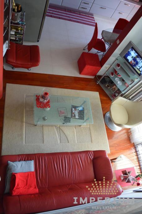 Stan je dvoetažan, sastoji se od kuhinje s dnevnim dijelom na prvoj etaži, dnevni boravak na galeriji, dvije spavaće sobe, dvije kupanice i balkon.