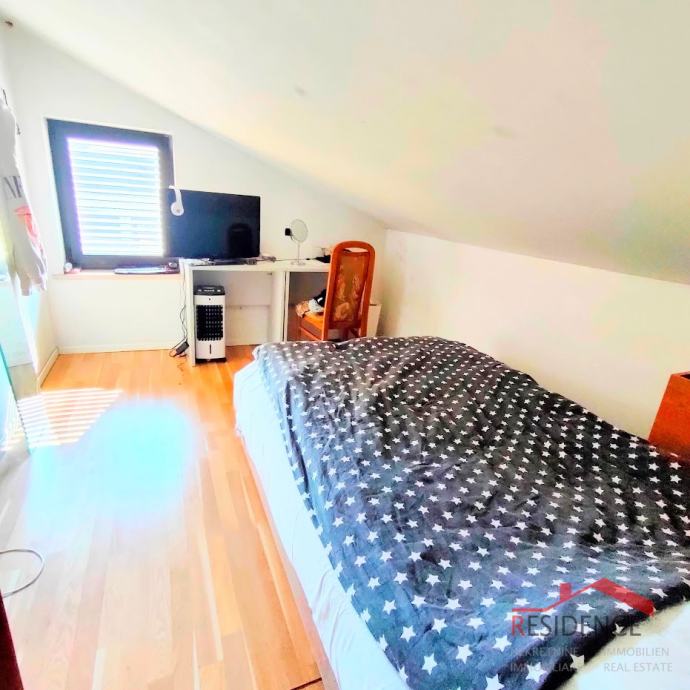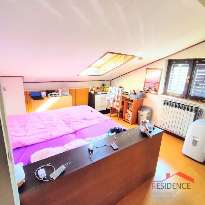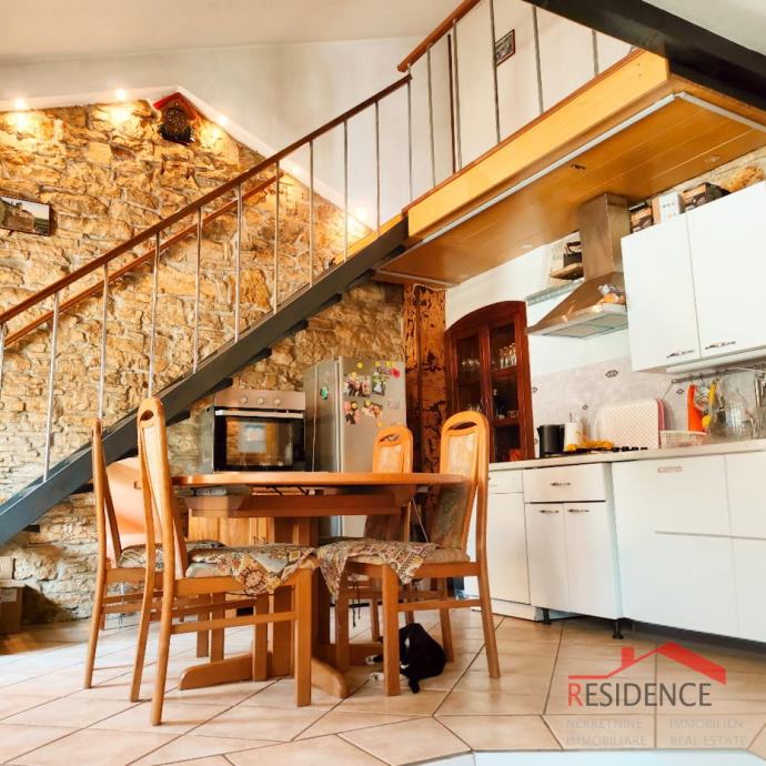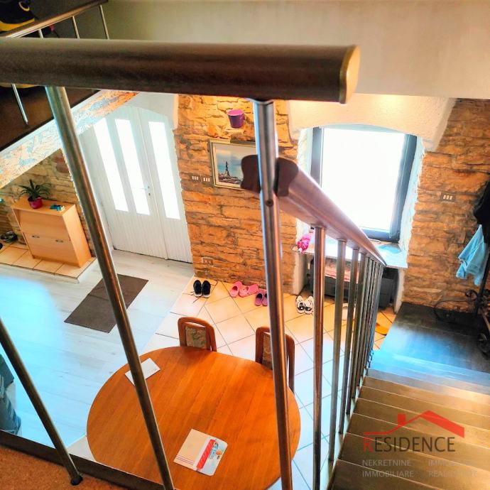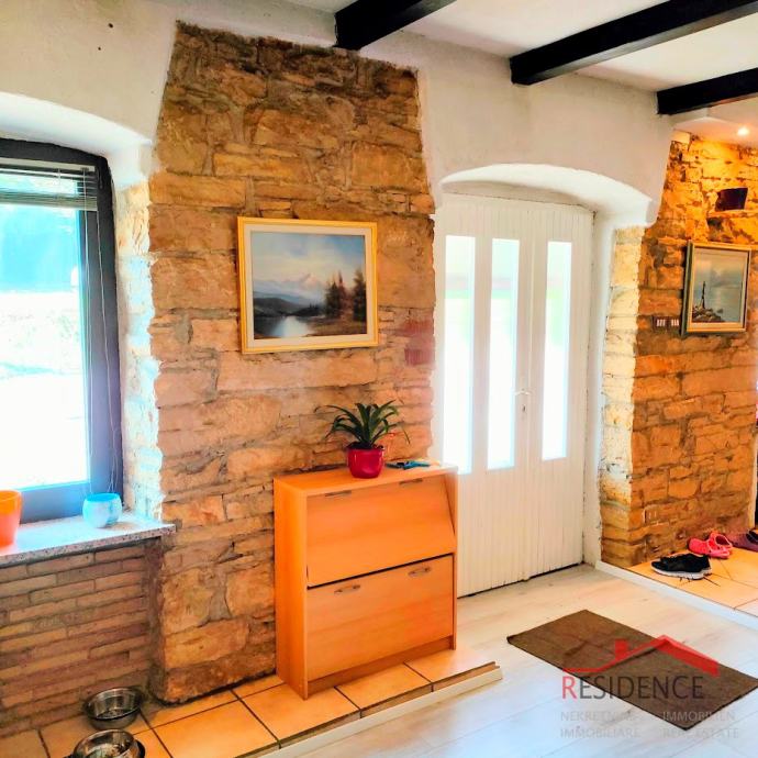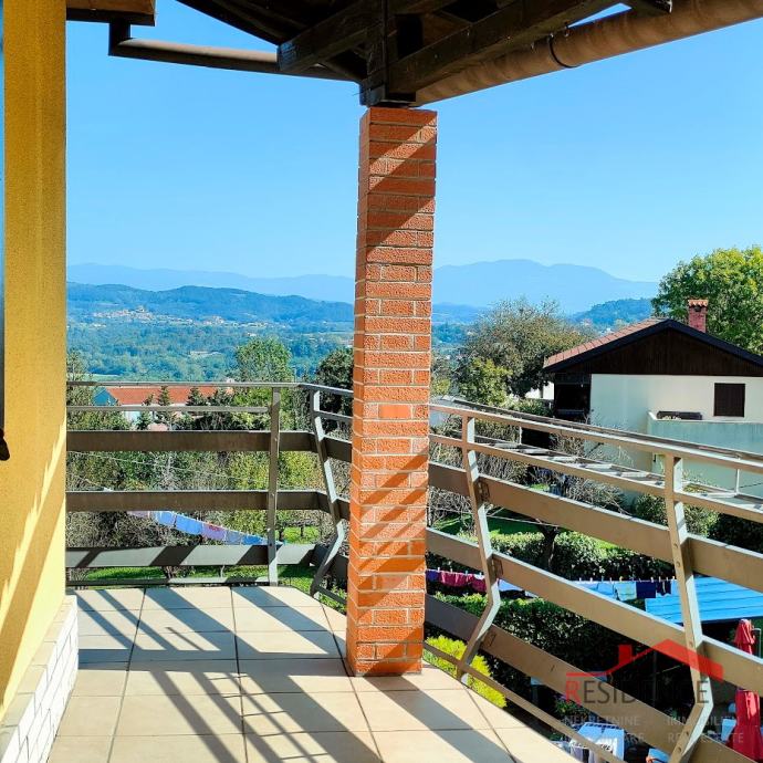 Pazin, kuća sa lijepim pogledom na Učku. Kuća površine 208 m2, sastoji se od 2 stana. Prvi stan je dvoetažni i sastoji se od dnevnog boravka sa kuhinjom i blagovaonicom u prizemlju, dok su na katu tri spavaće sobe, kupaonica i ostava. Drugi stan je jednoetažni i sastoji se od kuhinje sa blagovaonicom, spavaće sobe, kupaonice i terase sa lijepim pogledom. Kuća je adaptirana 2019 godine. U suterenu je garaža i konoba a ispred je kamin i roštilj. Okućnica 341 m2.