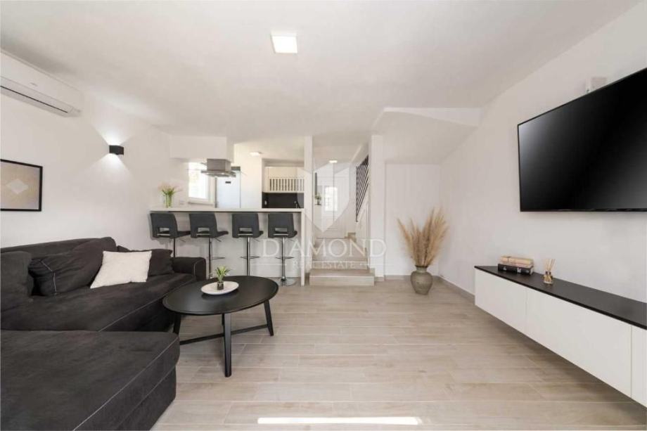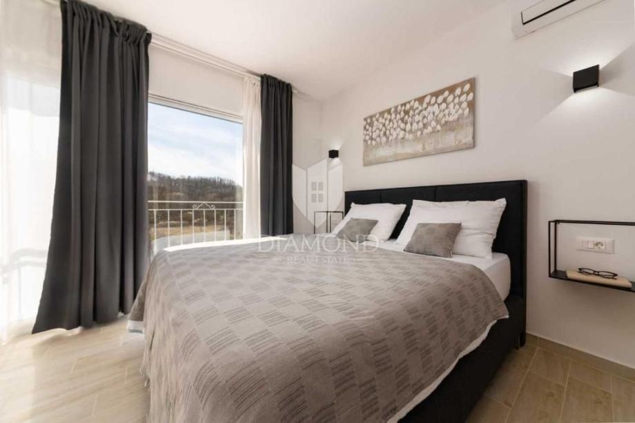 Njezina ukupna površina iznosi 100 m2, te prostire na tri etaže. U prizemlju se nalazi dnevni boravak, blagovaona i kuhinja i wc, stepeništem se penjemo na naredne etaže gdje se nalaze dvije spavaće sobe i kupaona sa pogledom na bazen i na pejzaž kojim je kuća okružena.