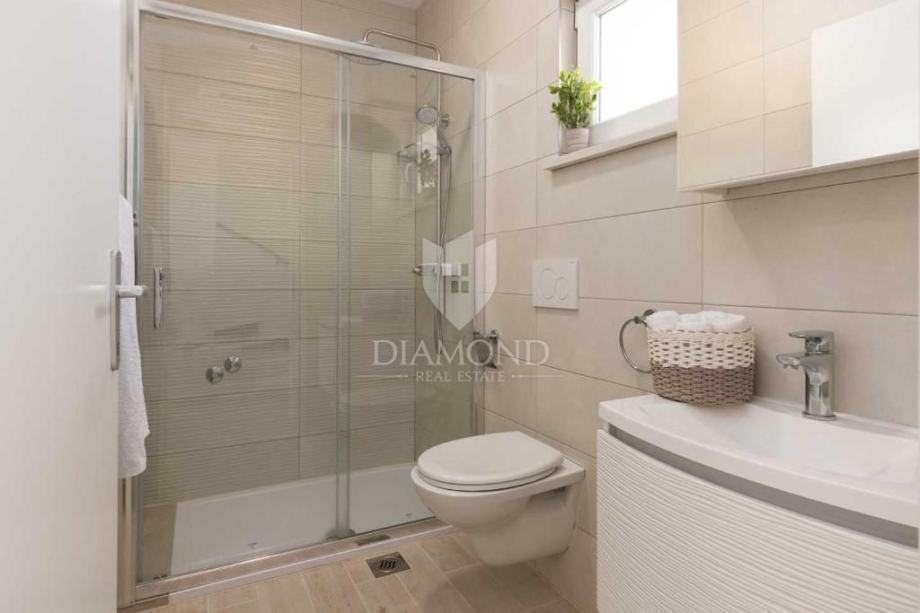Grijanje kuće je planirano putem klima uređaja koje služe i za hlađenje te podno grijanje na struju što osigurava ugodnu temperaturu tijekom cijele godine.. Iz dnevnog boravka izlazi se na natkrivenu terasu gdje se nalazi bazen sa sunčalištem. Bazen ima ukupno 40 m2.