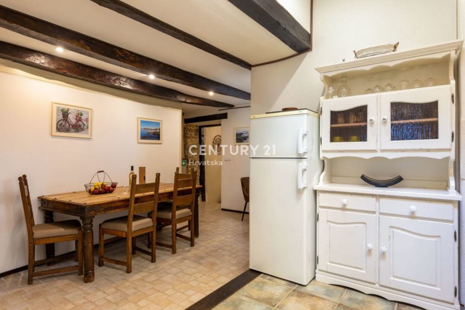 Glavnim ulazom dolazi se u prizemlje kuće u kojem je smješten dnevni boravak s ognjištem, kuhinja s blagovaonom, kupaonica i spavaća soba.
