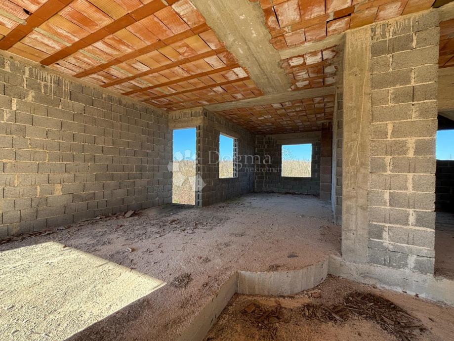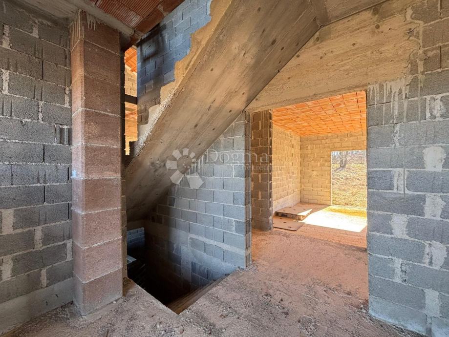 Ova prostrana kuća u roh bau fazi smještena je na frekventnoj lokaciji u okolici Pazina, na parceli od 5746 m2. Kuća je projektirana kao dvojnica, s ukupnom površinom od približno 800 m2, pri čemu svaka strana zauzima oko 400 m2. Sastoji se od četiri etaže: suterena, prizemlja, prvog i drugog kata, čime nudi široke mogućnosti za daljnje oblikovanje prostora prema vlastitim željama i potrebama.