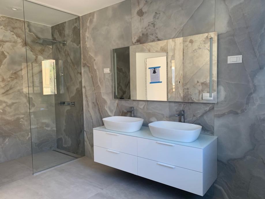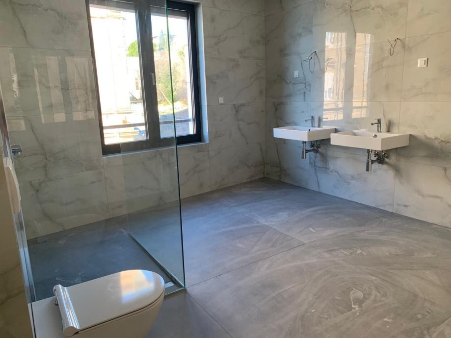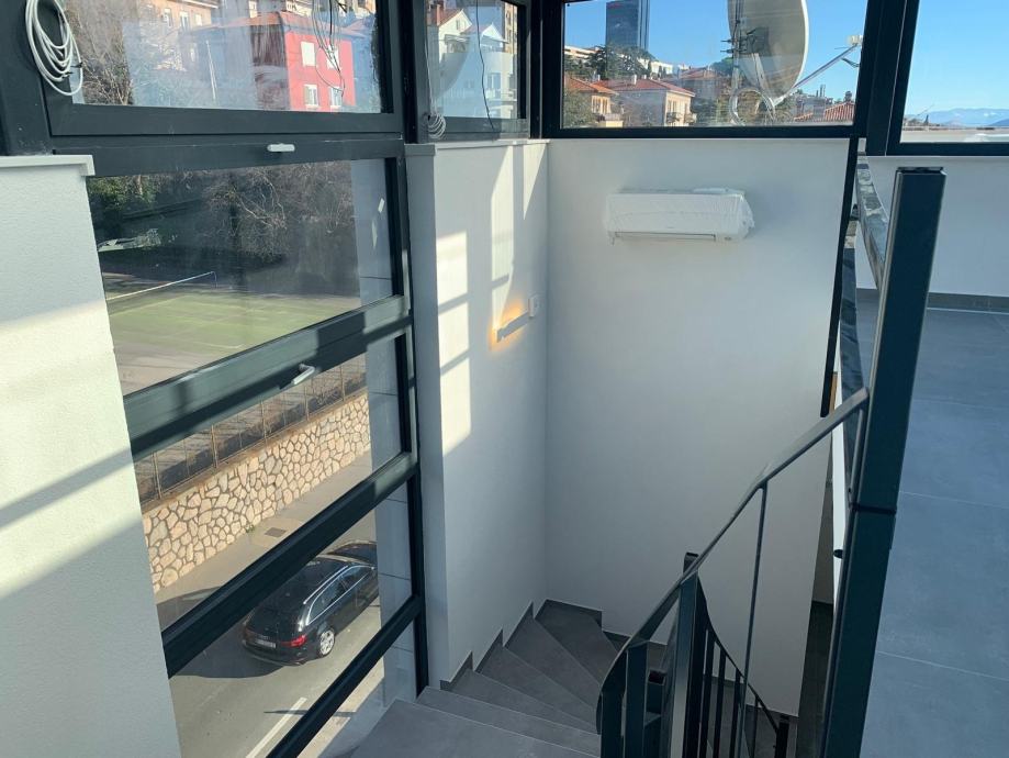 Podovi interijera - visokokvalitetni parket, a u kupaonicama, kuhinjama i toaletima - visokokvallitetna keramika.Vanjski prostori na terasama i balkonima: kamen, keramika ili drvoSvi vanjski otvori (prozori/troslojna izo stakla i vrata/dvoslojna izo stakla) biti će od visokokvalitetnog aluminijskih profila (schuco) boje antracit.Vanjska termo izolacija, električni brisoleji (sjenila), SAT televizija.